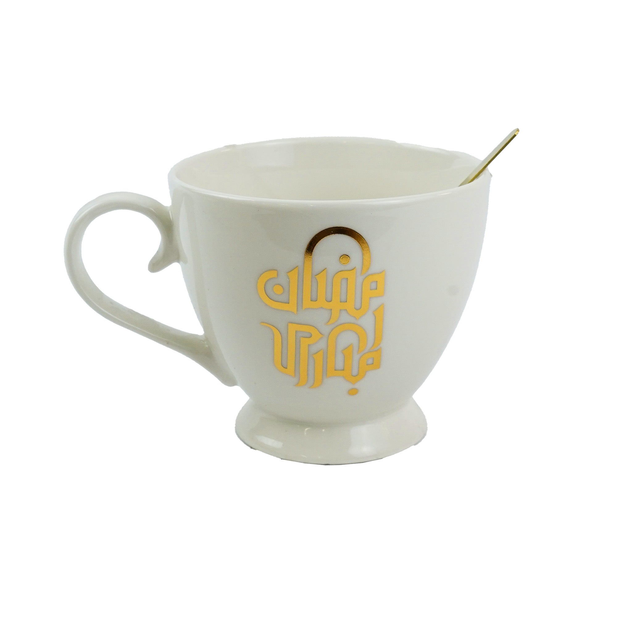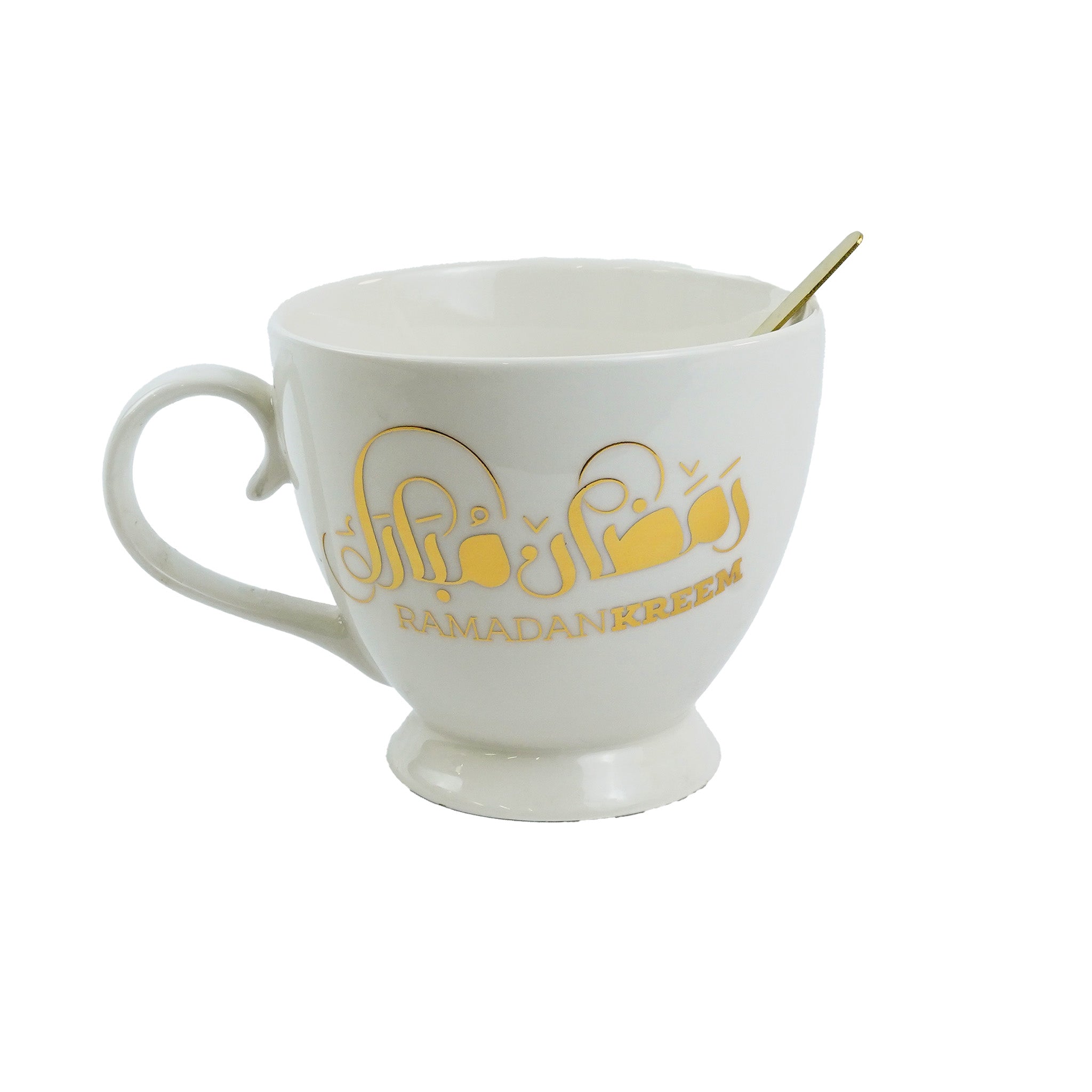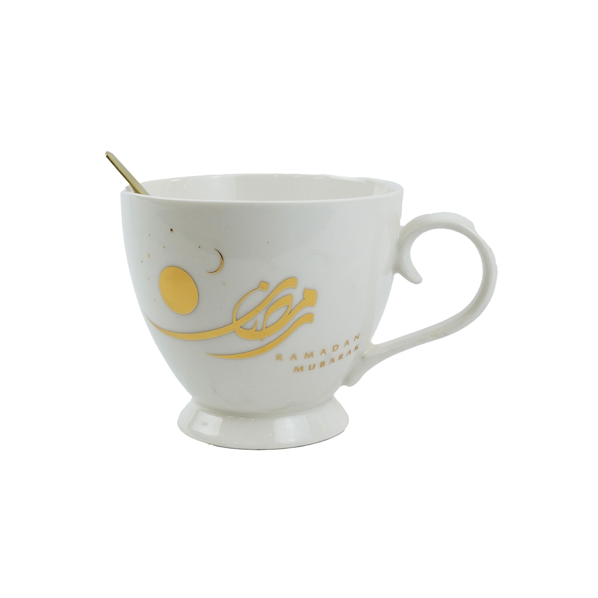 Large White RAMADAN Mugs With Gold Spoon in Gift Box (AB777)