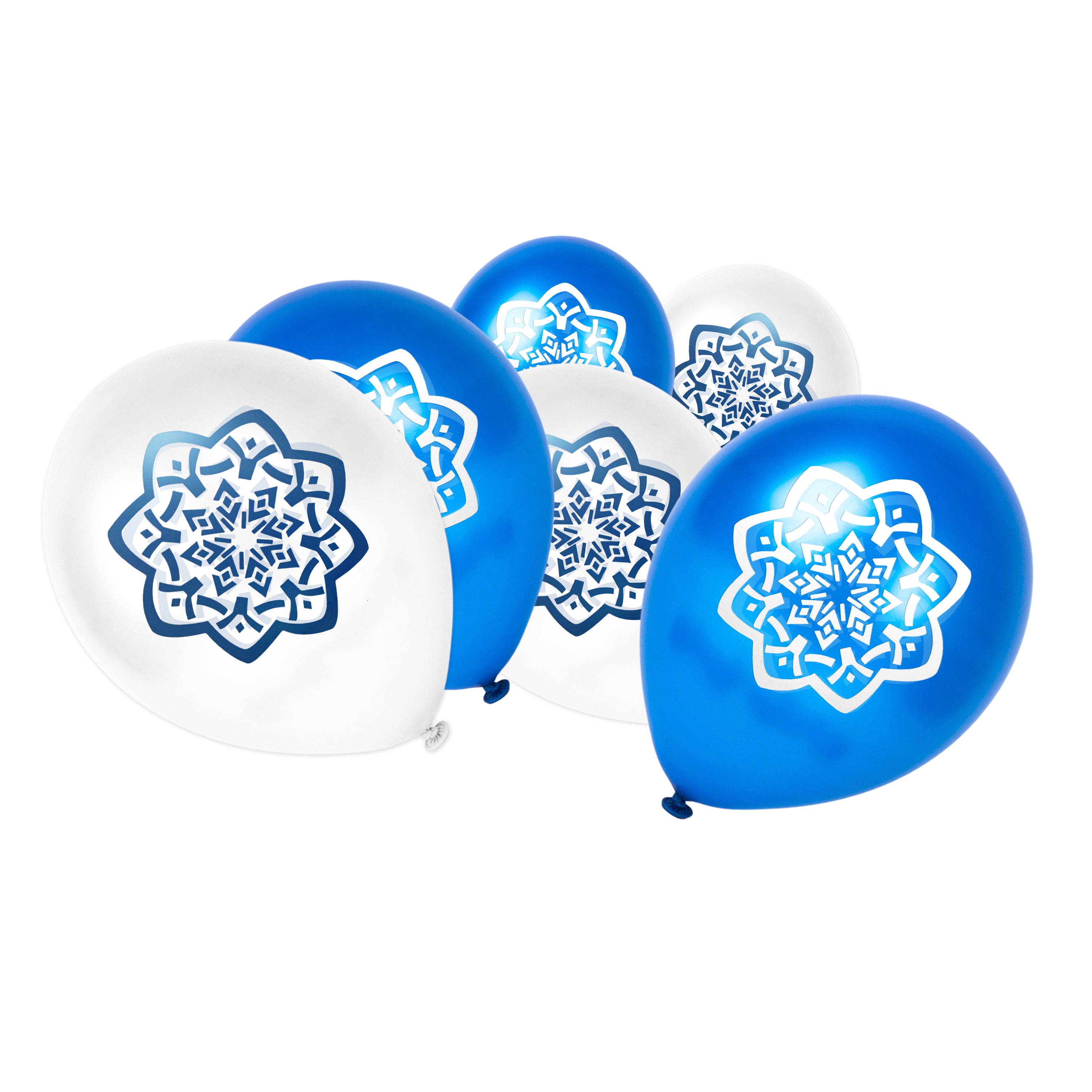 • 12 blue & white balloons printed with a floral pattern on both sides