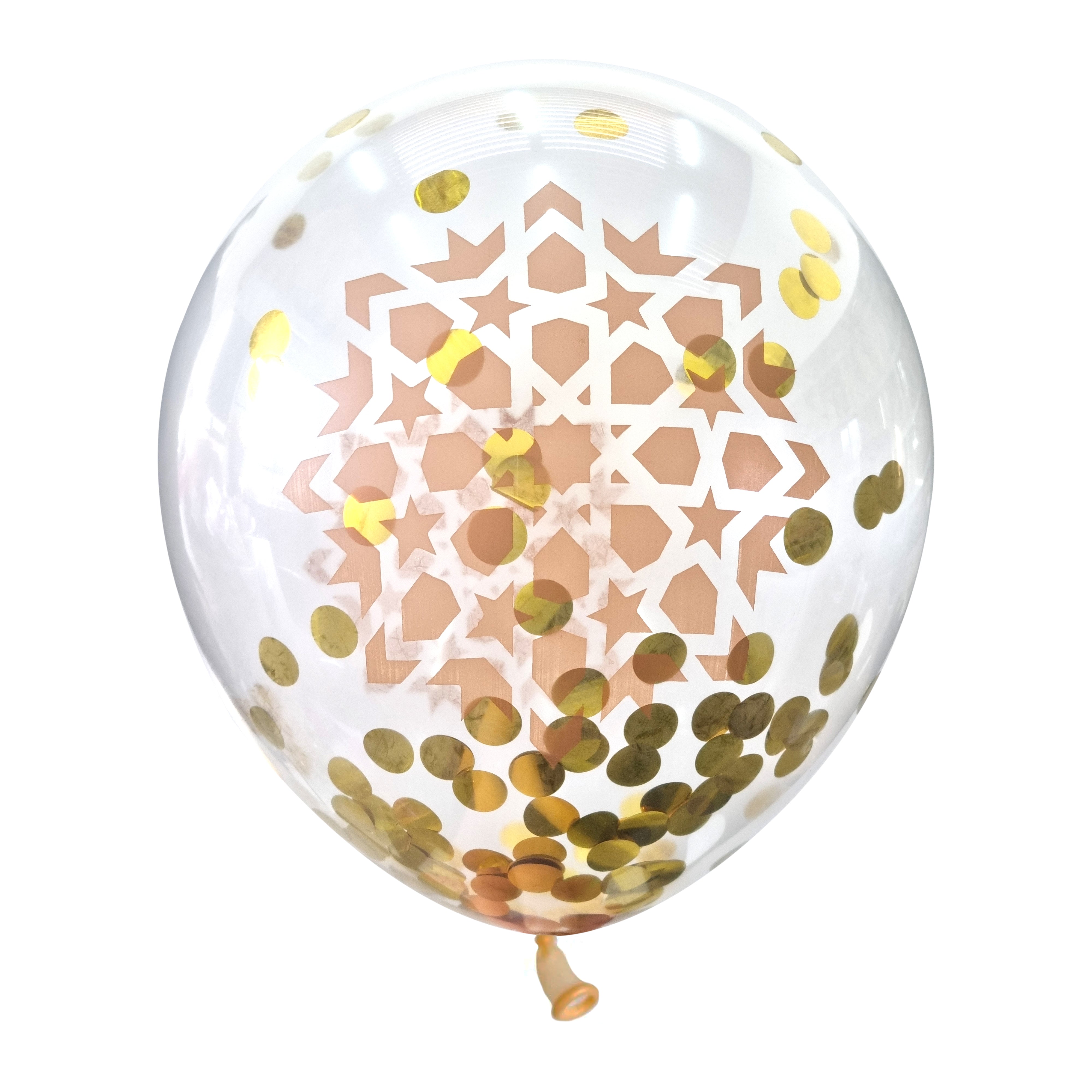 • High quality printed Geometric Gold confetti latex balloons - Ideal for Eid parties & events.
