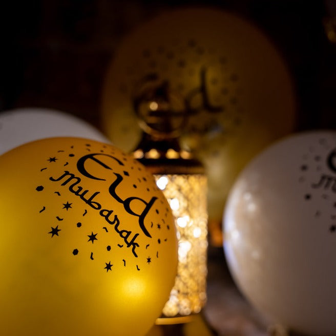 • High quality printed Gold latex balloons - Ideal for Eid parties & events.