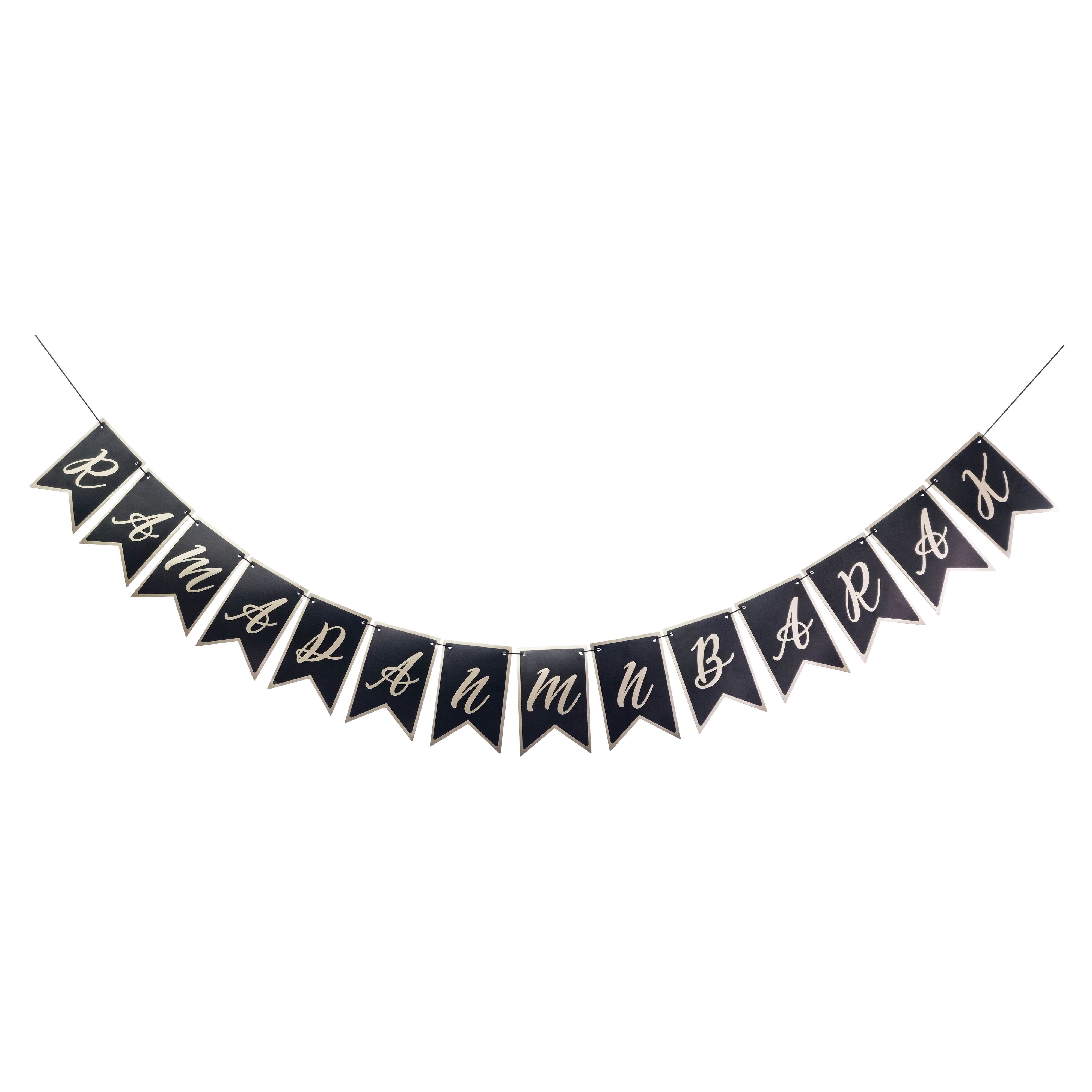 Black & Metallic Taupe 'Ramadan Mubarak' Dovetail Pennant Card Bunting - 2m