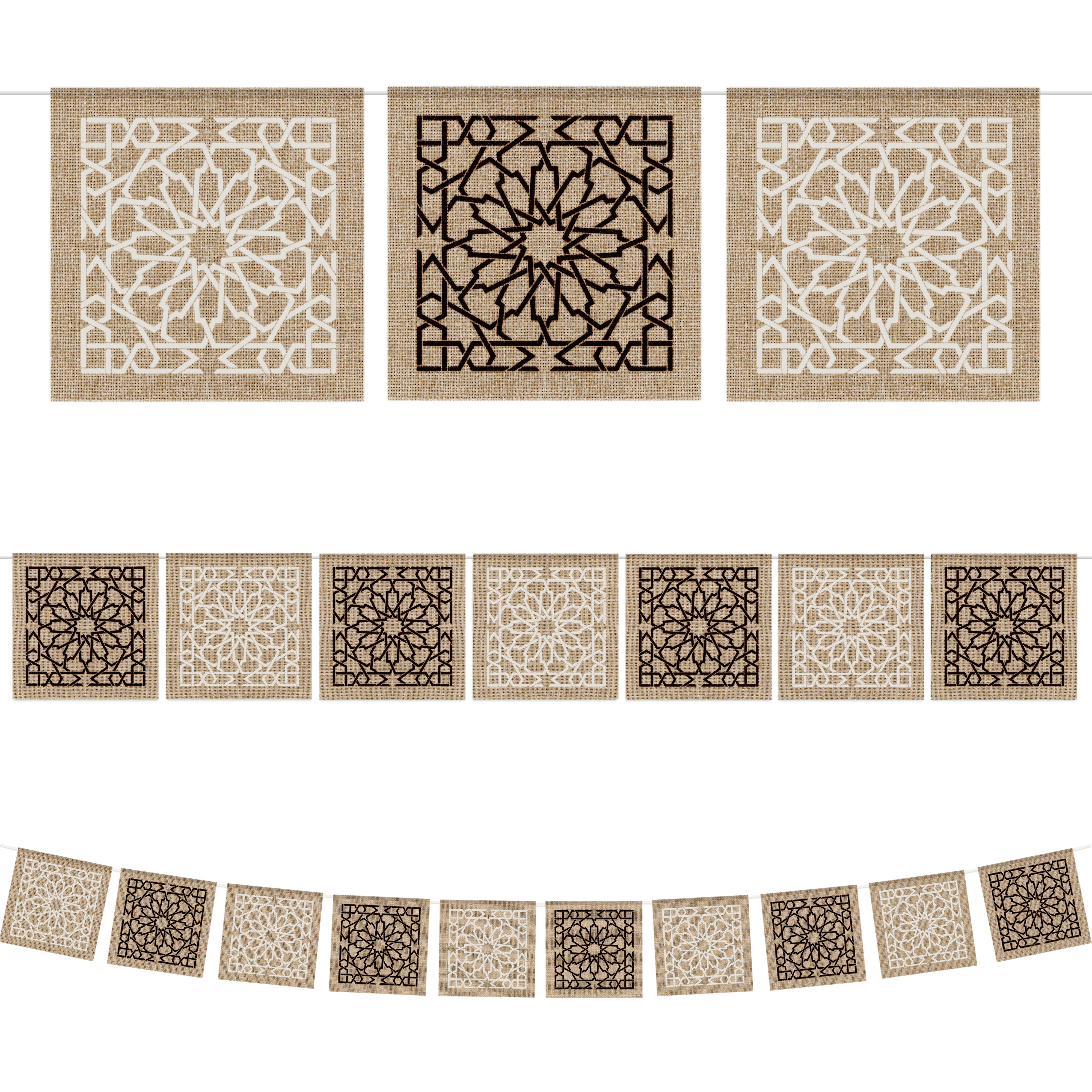 Islamic Geometric Pattern Square Hessian Bunting - 2 meters