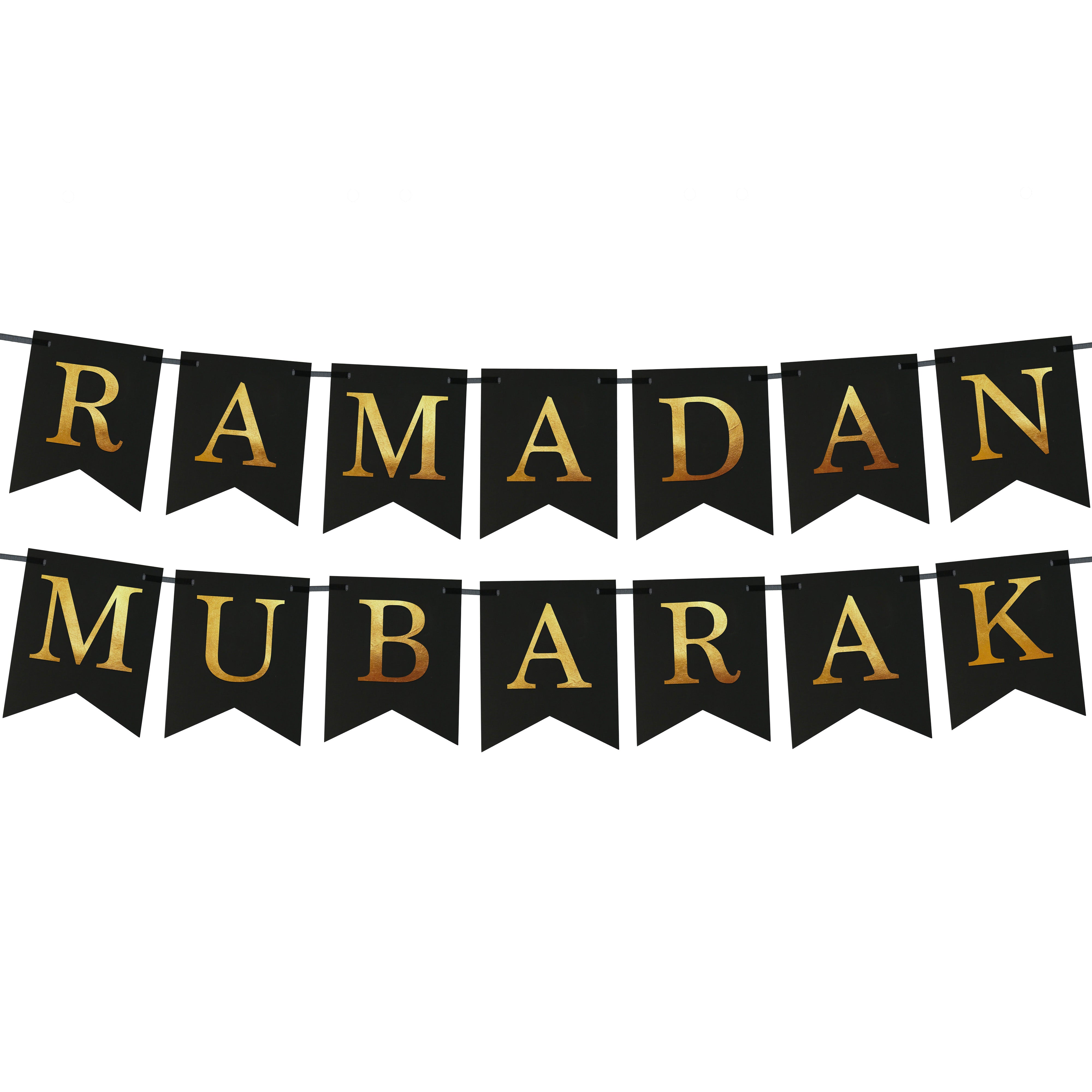 • 'RAMADAN MUBARAK' black Paper bunting metallic gold lettering