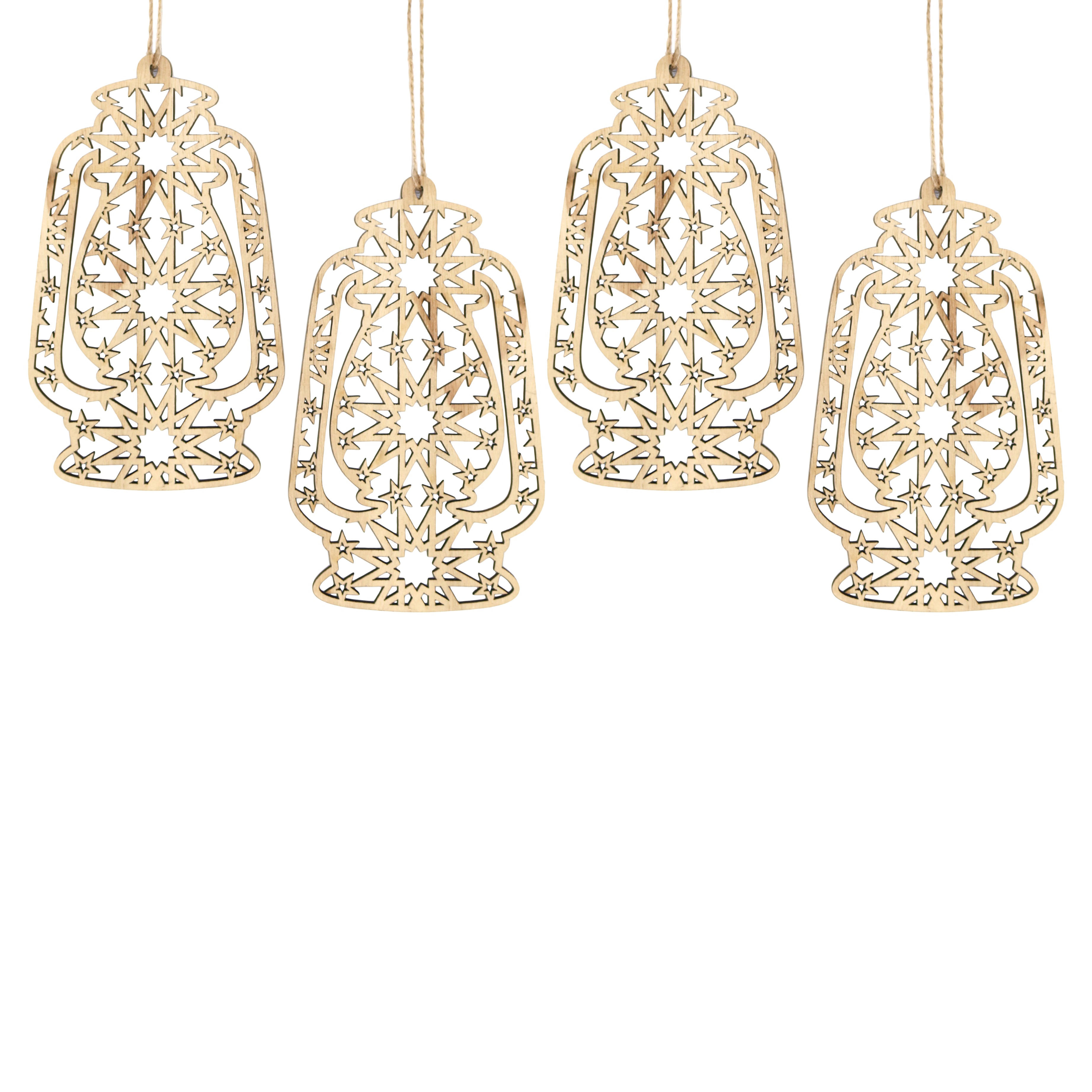 • Set of 4 natural wooden hanging lantern decorations - Approx 17.5cm x 10.5cm