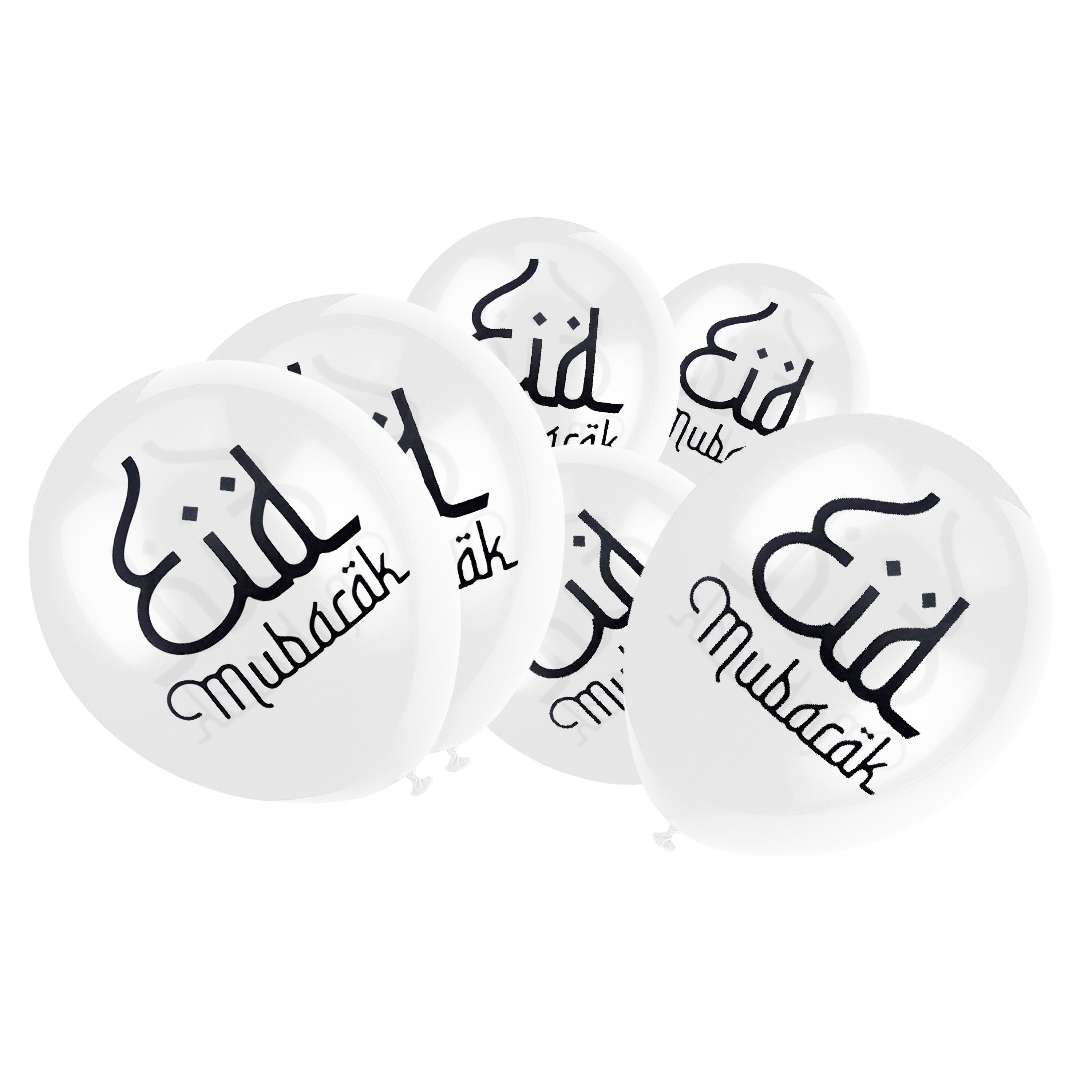• Pack of 12 'Eid Mubarak' White latex balloons