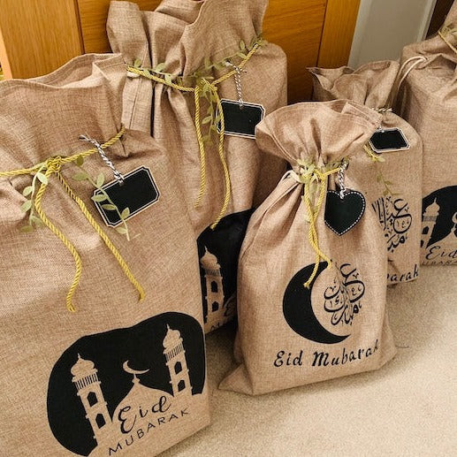 • Give your friends and family an Eid to remember with our beautiful natural hessian Eid gift sacks