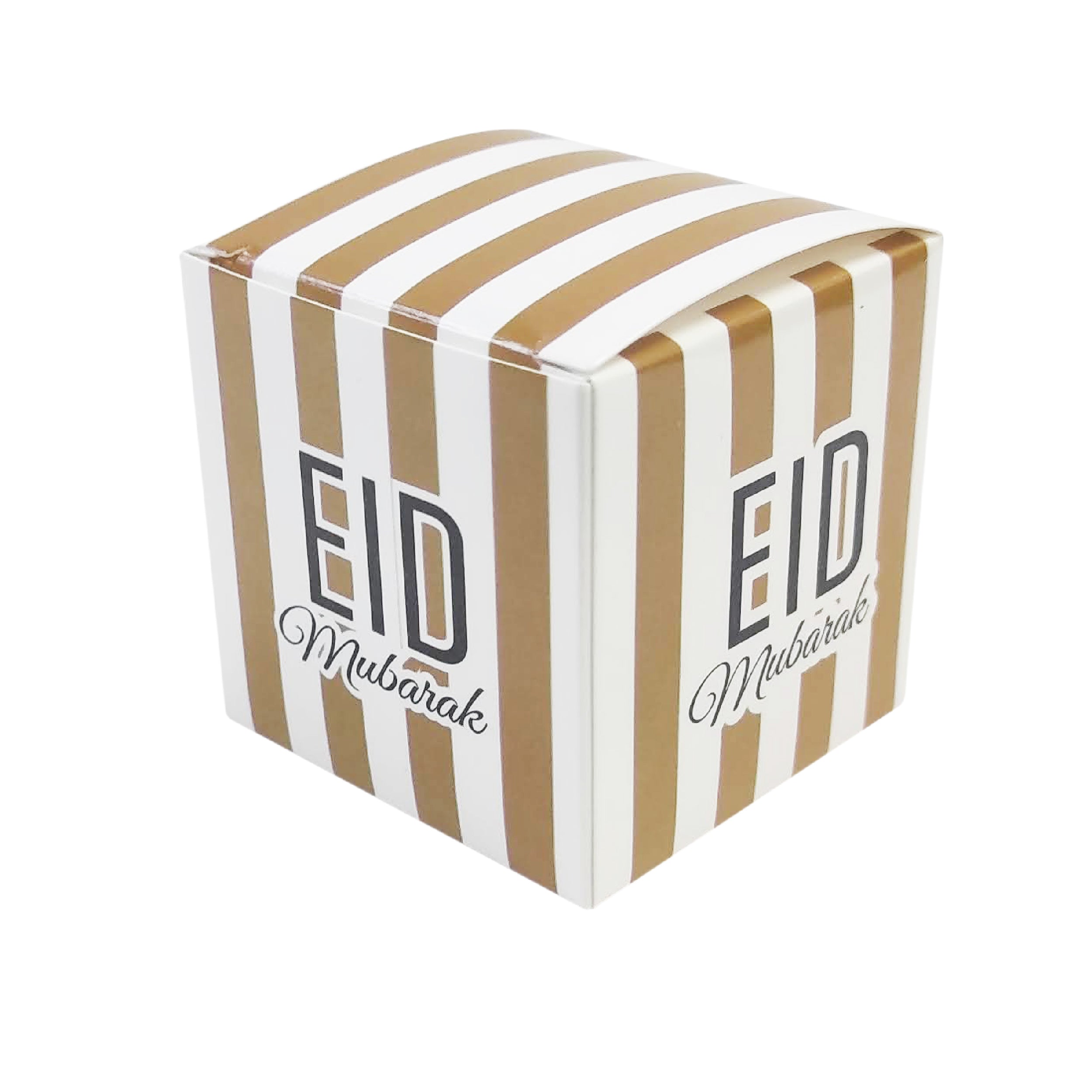 Gold & White Stripe Eid Mubarak Gift Favour Boxes 12 Pack
