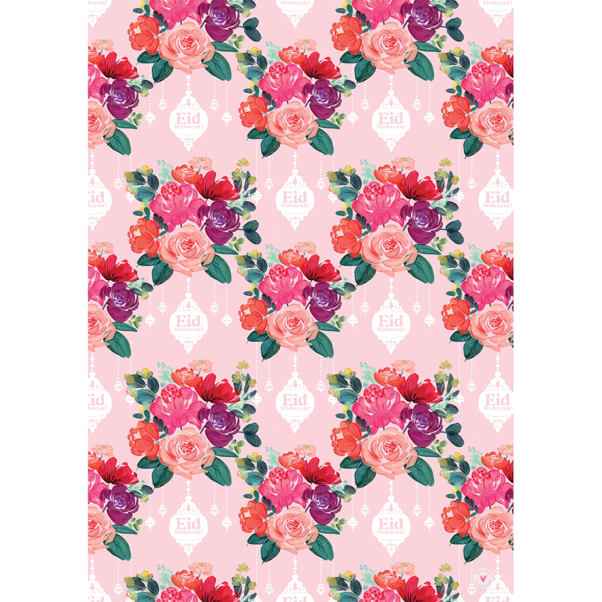 Pink Rose & Lantern Eid Mubarak Wrapping Paper - 70x50cm (5 Sheets)