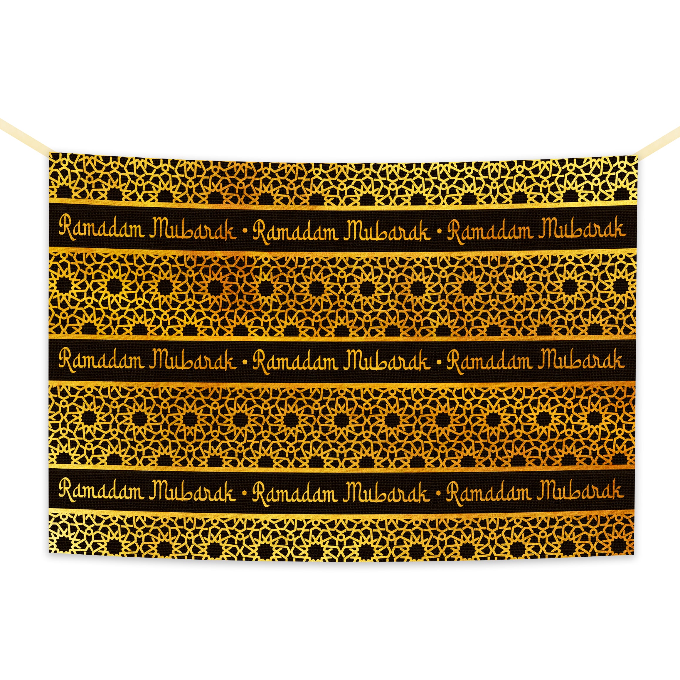 Black & Gold Ramadan Hanging Burlap Backdrop (142cm x 98.5cm)