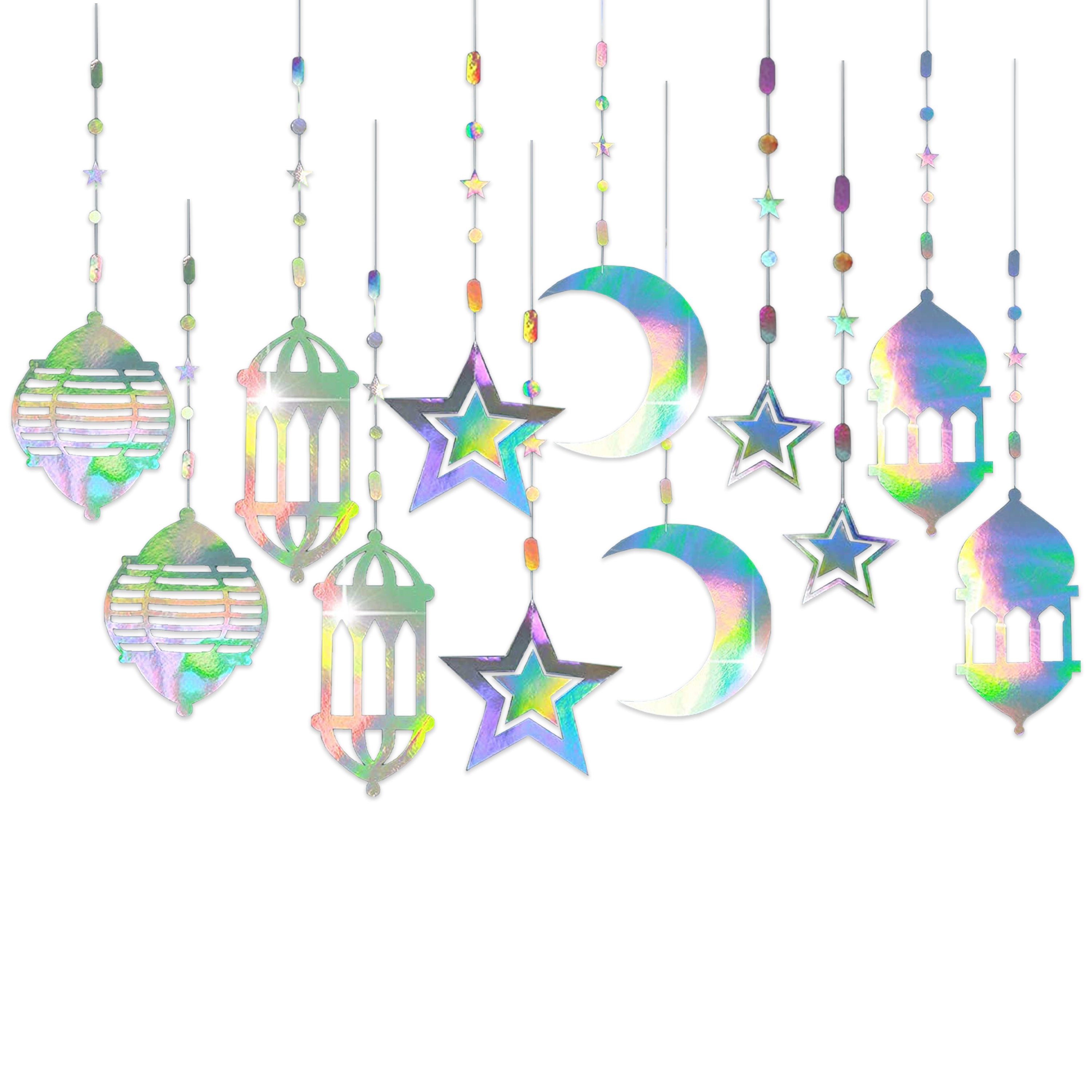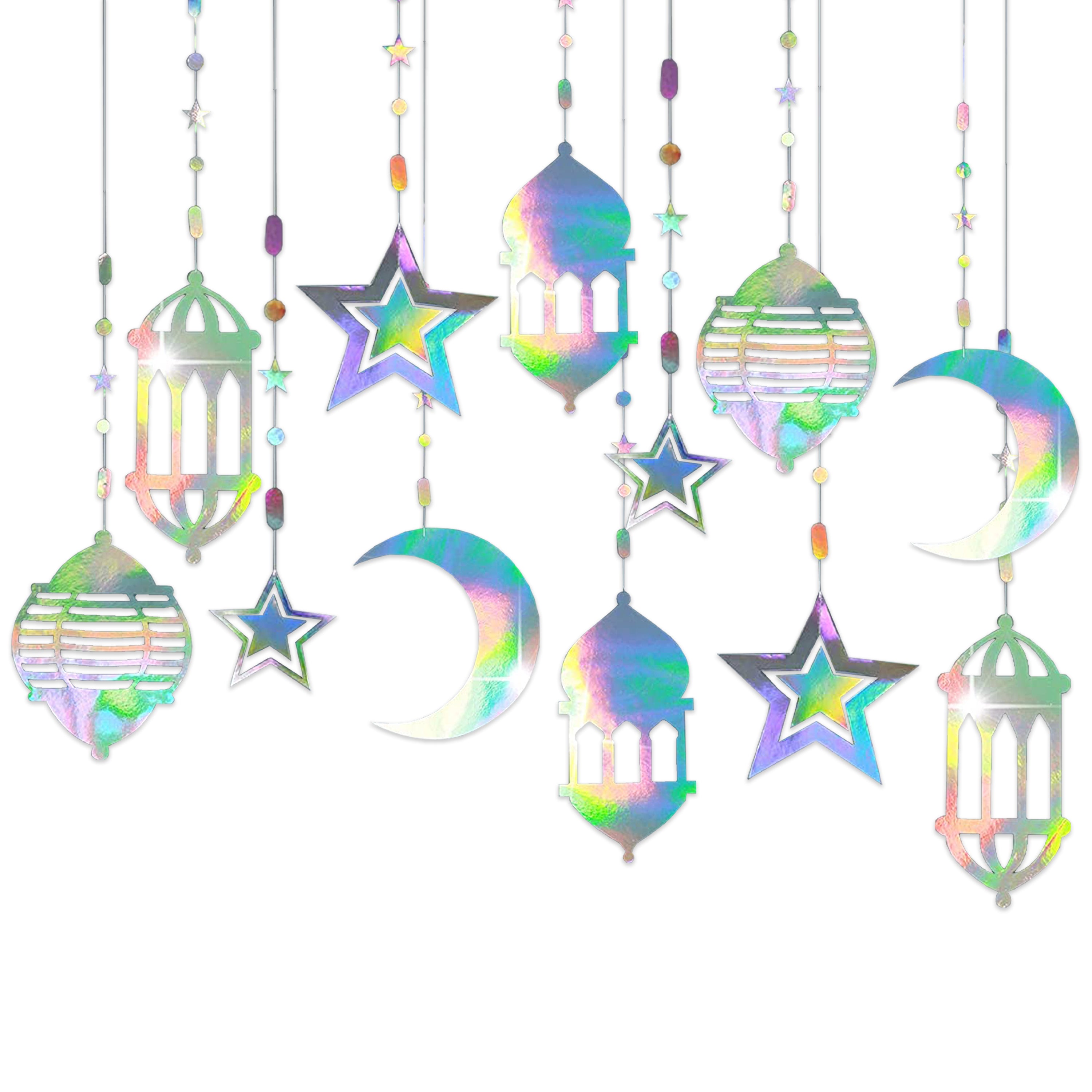 Pack of 12 Iridescent Lantern, Moon & Stars Hanging Mobile Decorations