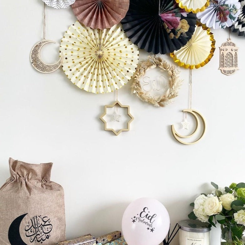Pack of 2 Gold Crescent Moon & Star Hanging Eid Decorations