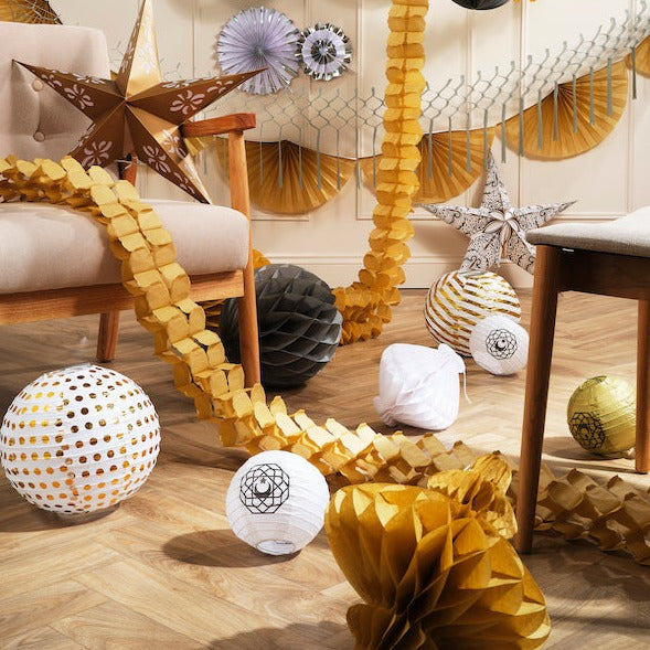 Pack of 2 Gold Paper Hanging Honeycomb Lanterns Eid Bazaar Decoration