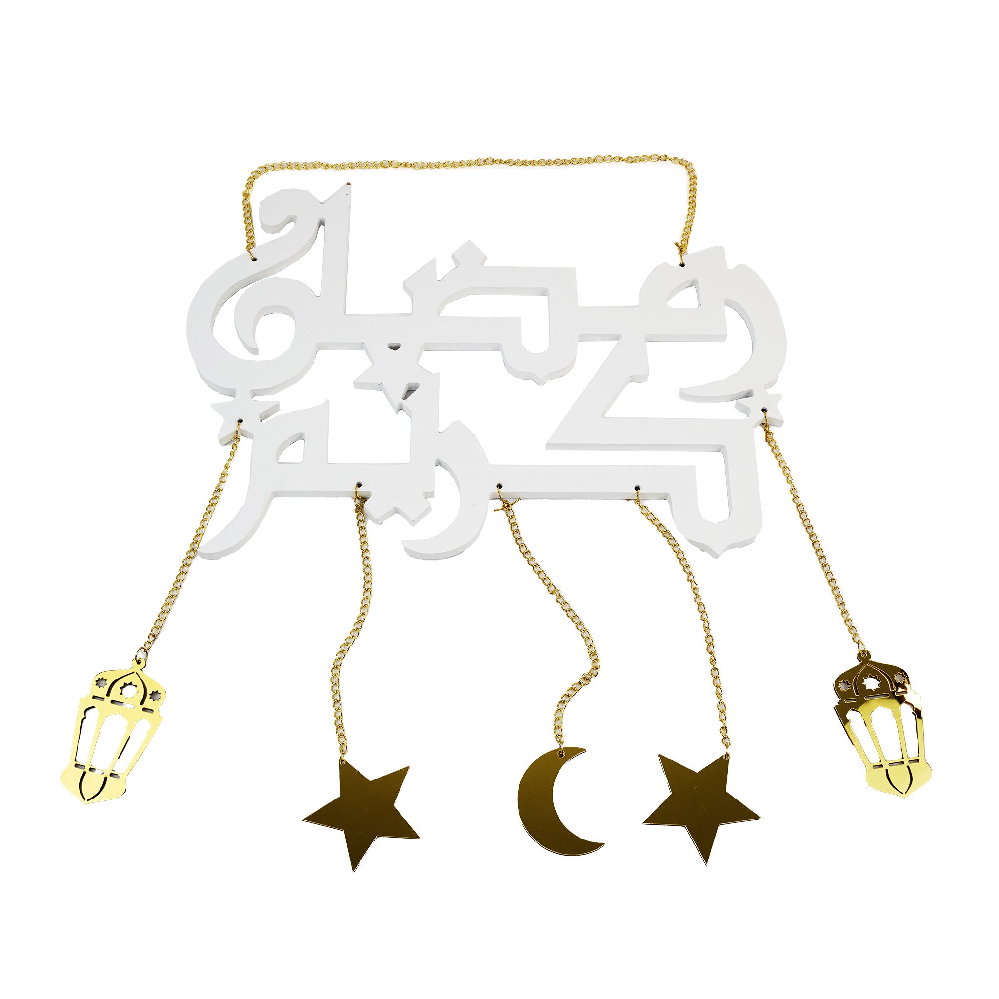 White Ramadan Kareem Wooden Hanging Sign with Lantern and Moon (757-75)