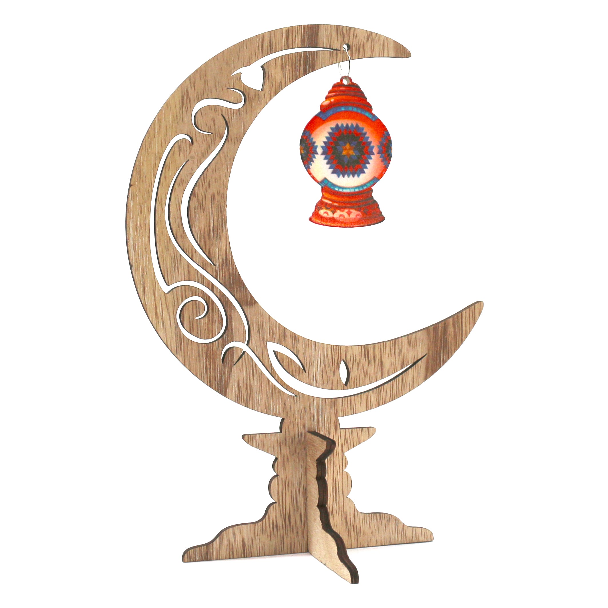 • A natural wooden crescent moon for decorating your tables, desks, shelves etc during the holy month