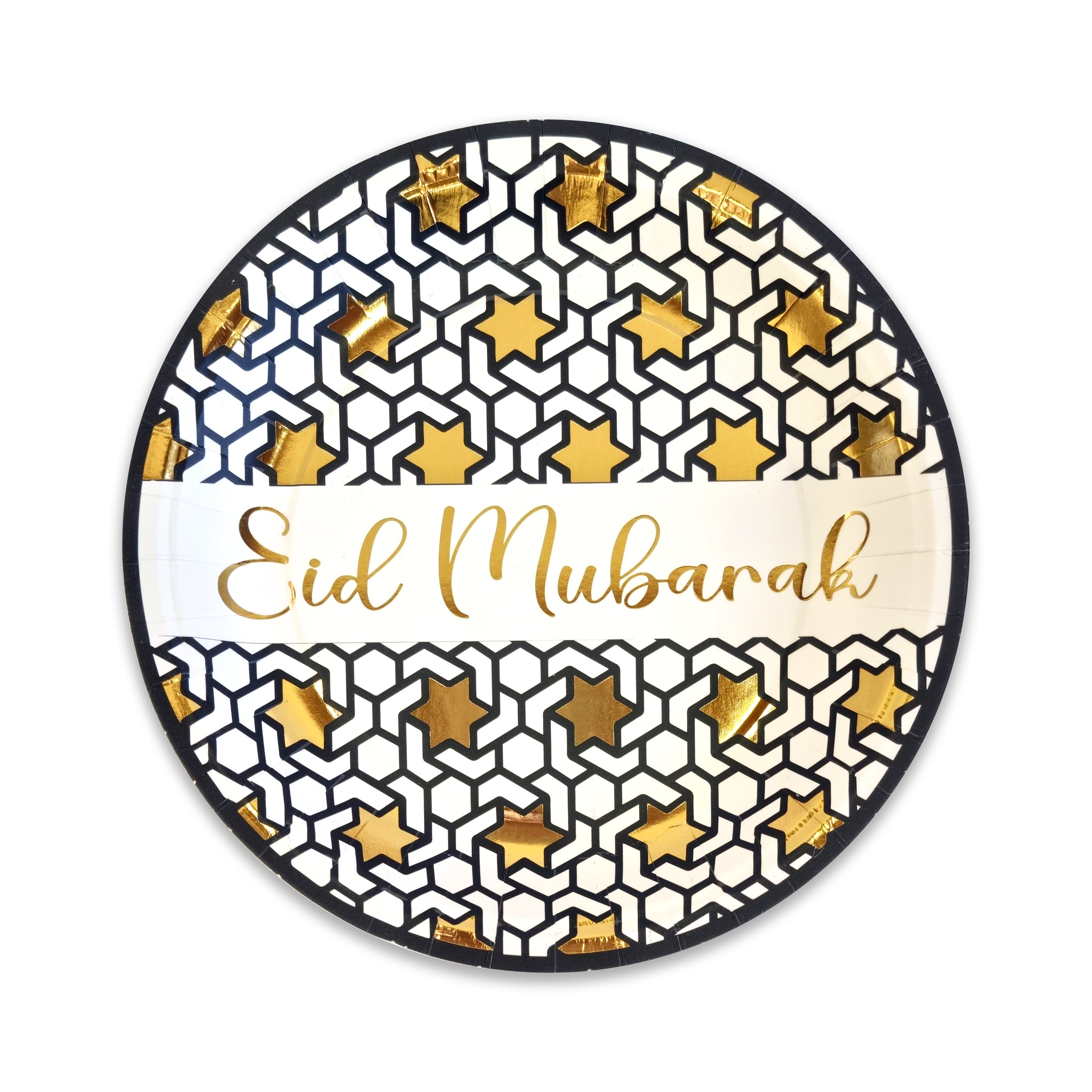 Black White & Gold Star 'Eid Mubarak' Disposable Paper Plate & Cups