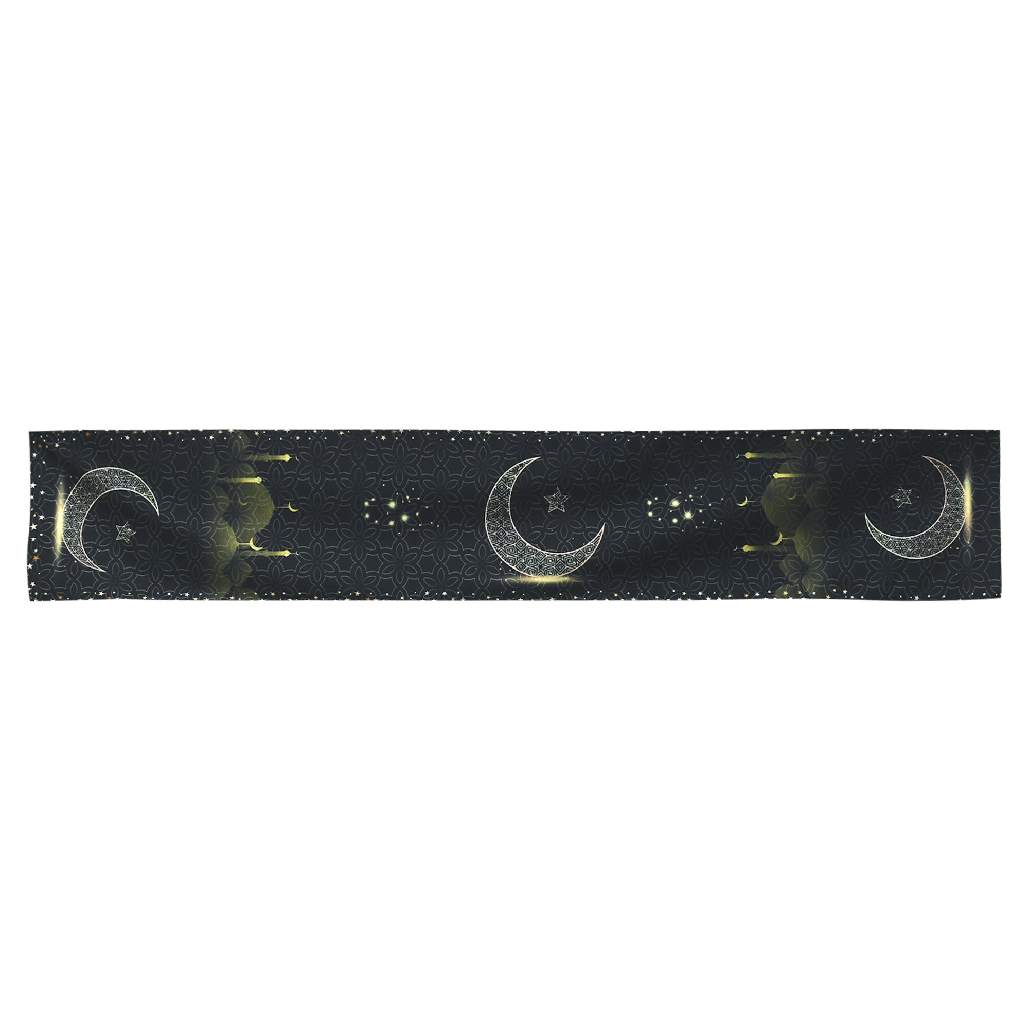 Eid and Ramadan Black & Gold Moon & Star Pattern Hessian Table Runner