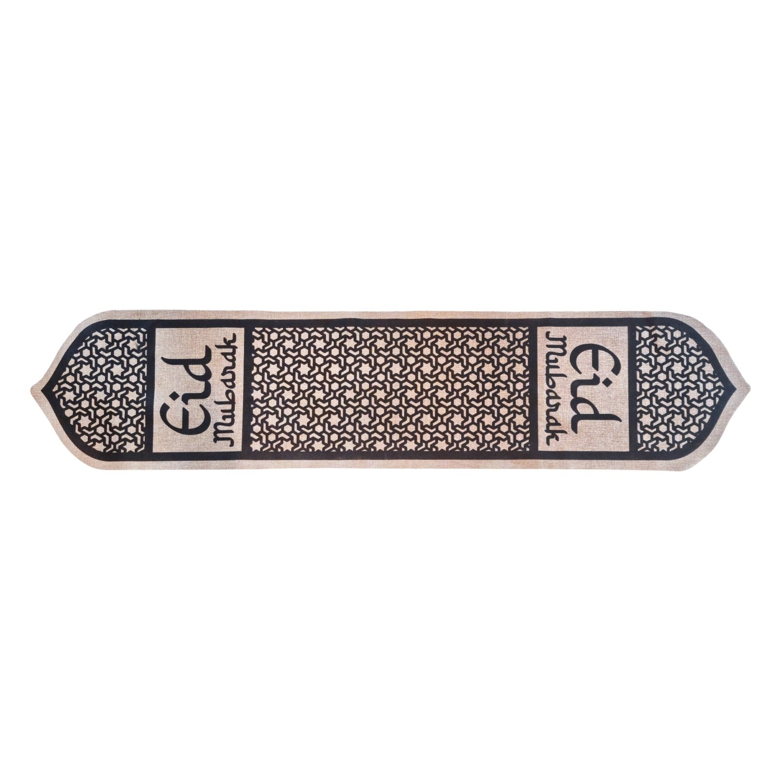Geometric Eid Mubarak Pattern Hessian Table Runner - 1.55m