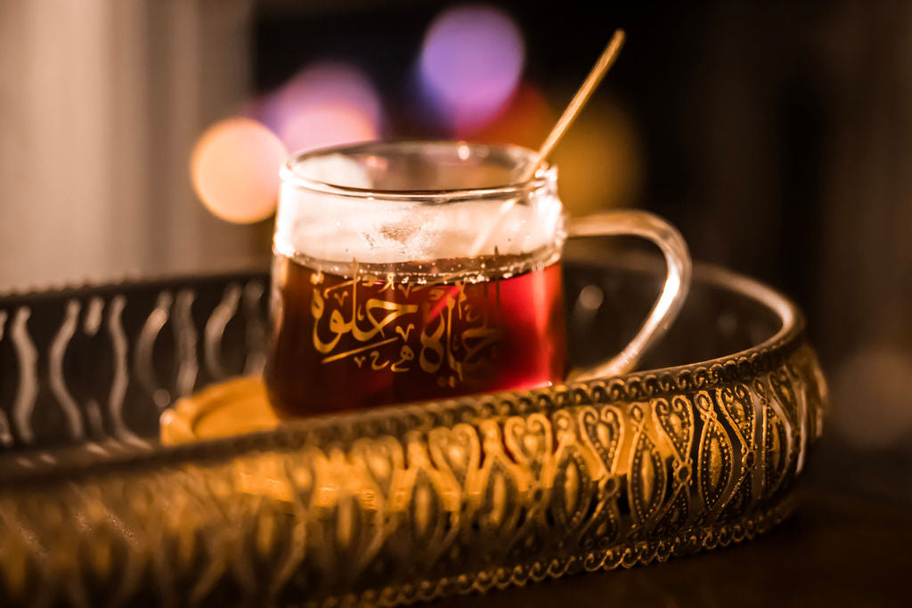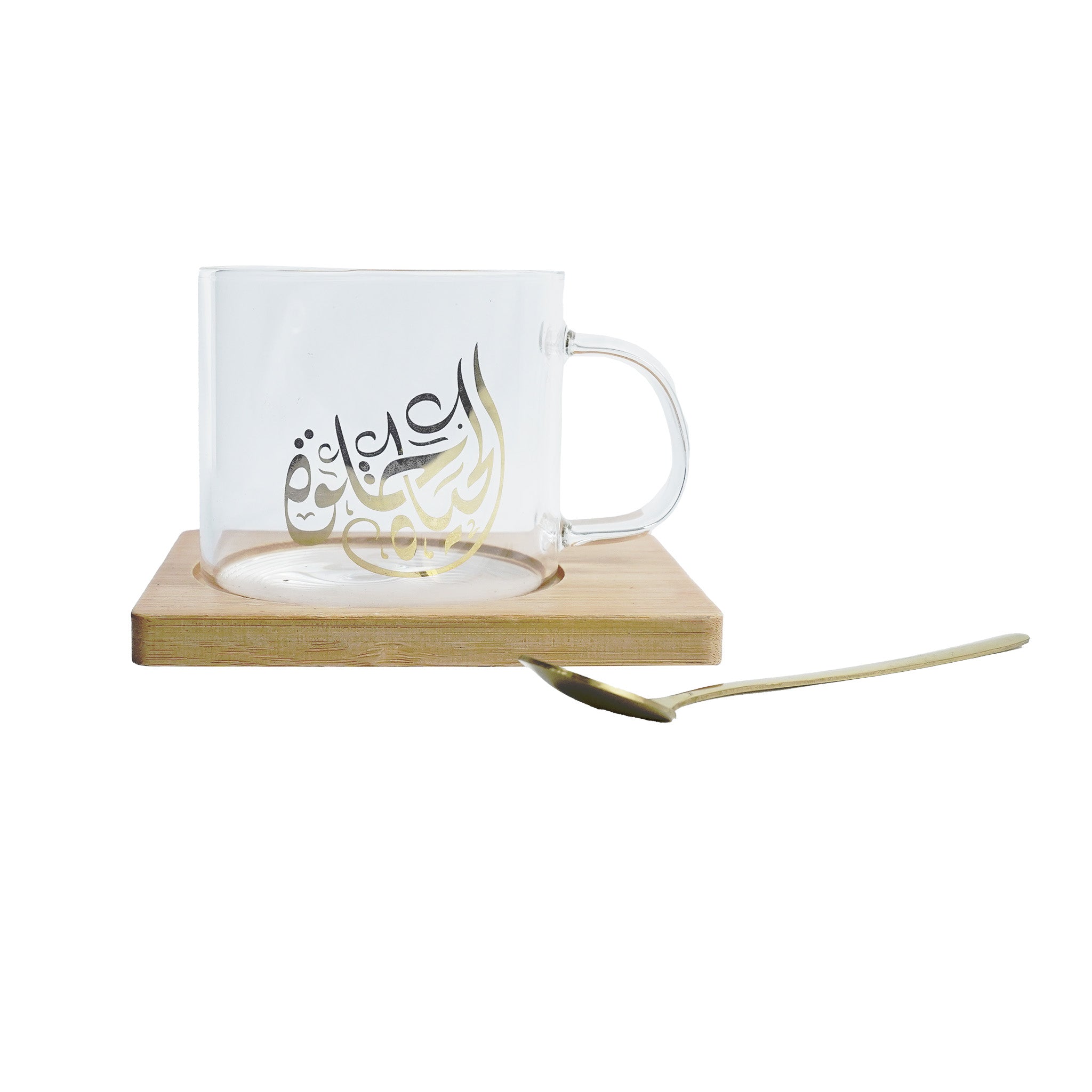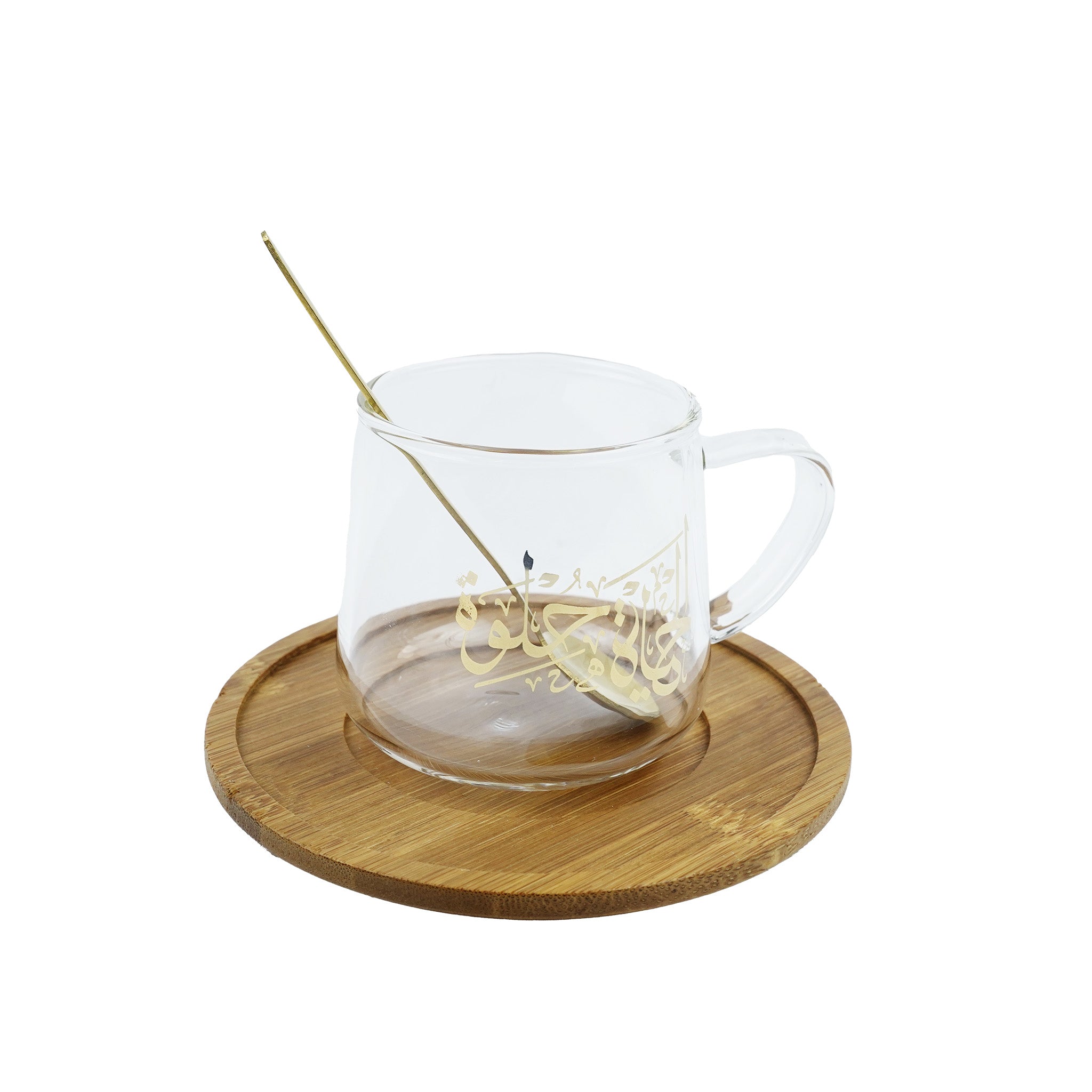 Glass Gold Arabic Calligraphy Mugs Plate-Spoon-Lid Options (BL)