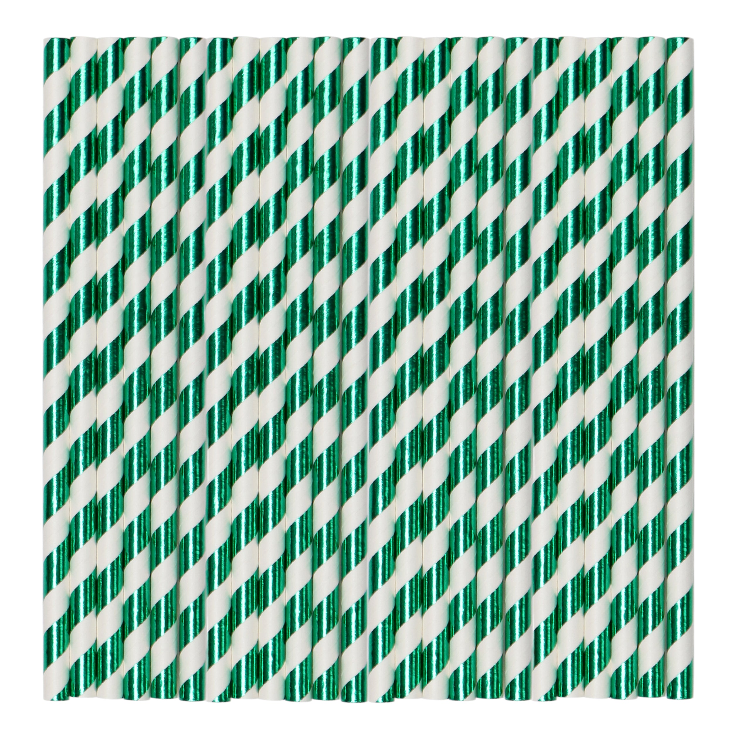 • Green & white metallic stripe straws.