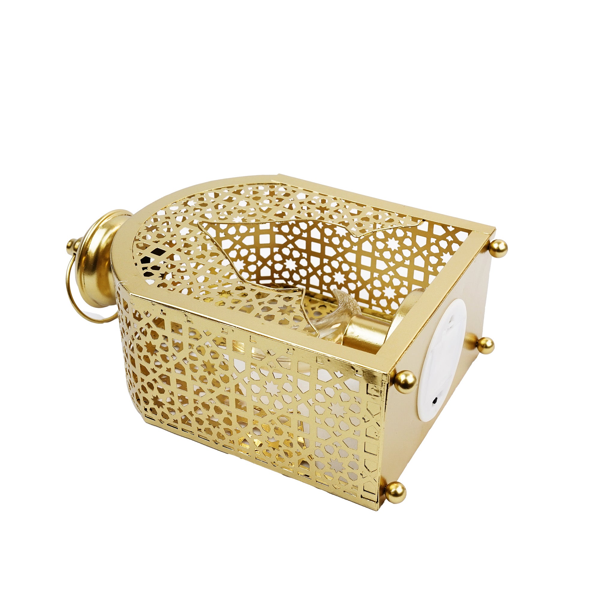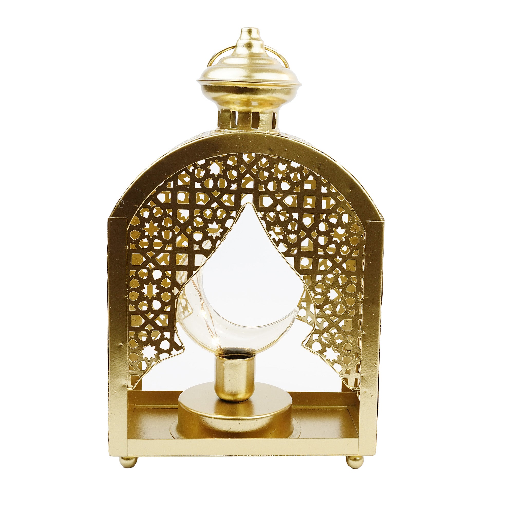 • Brushed Gold LED light lantern with Geometric Arch cutout design
