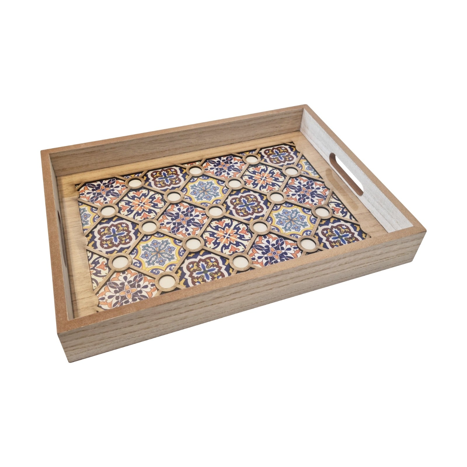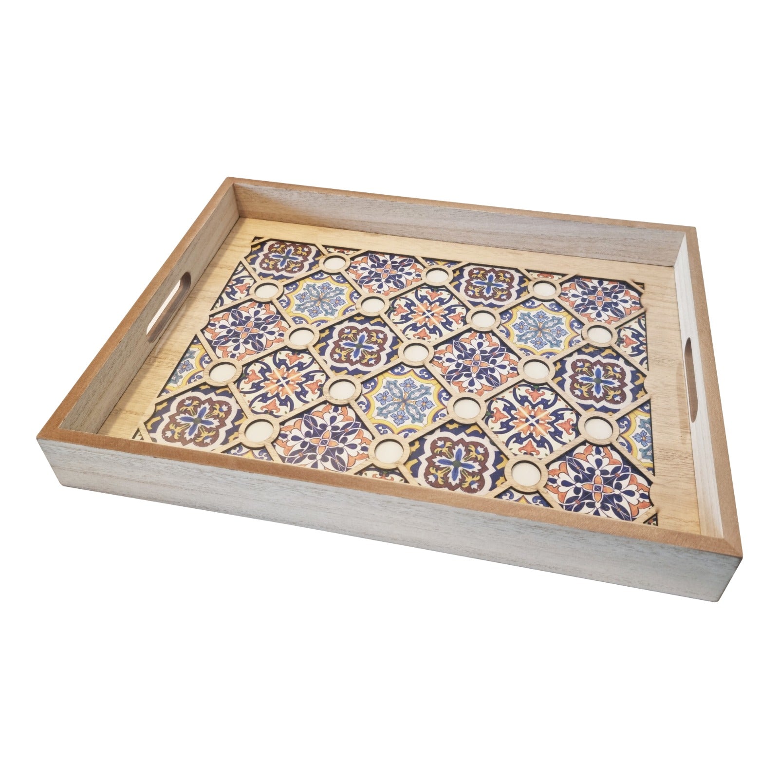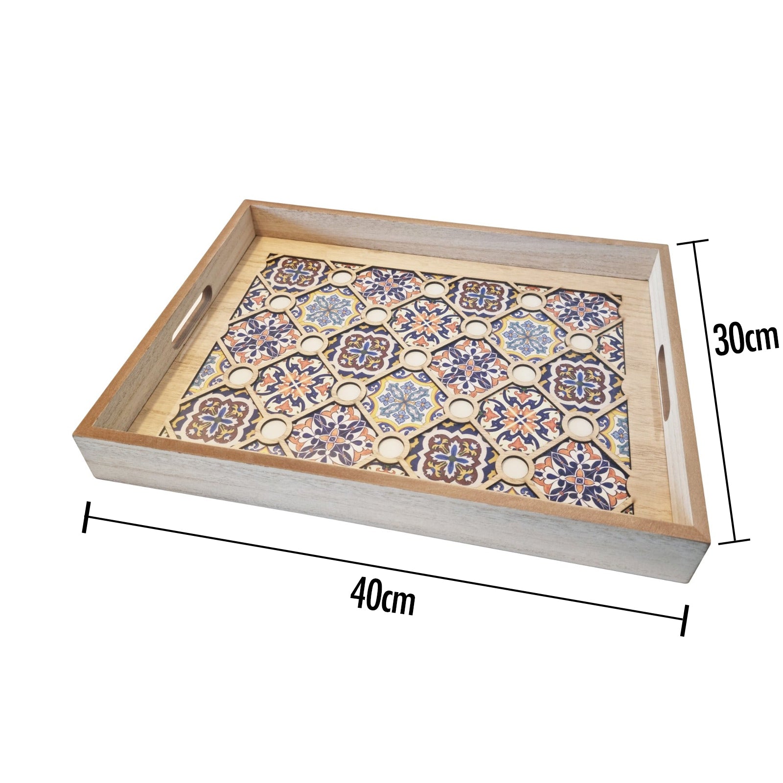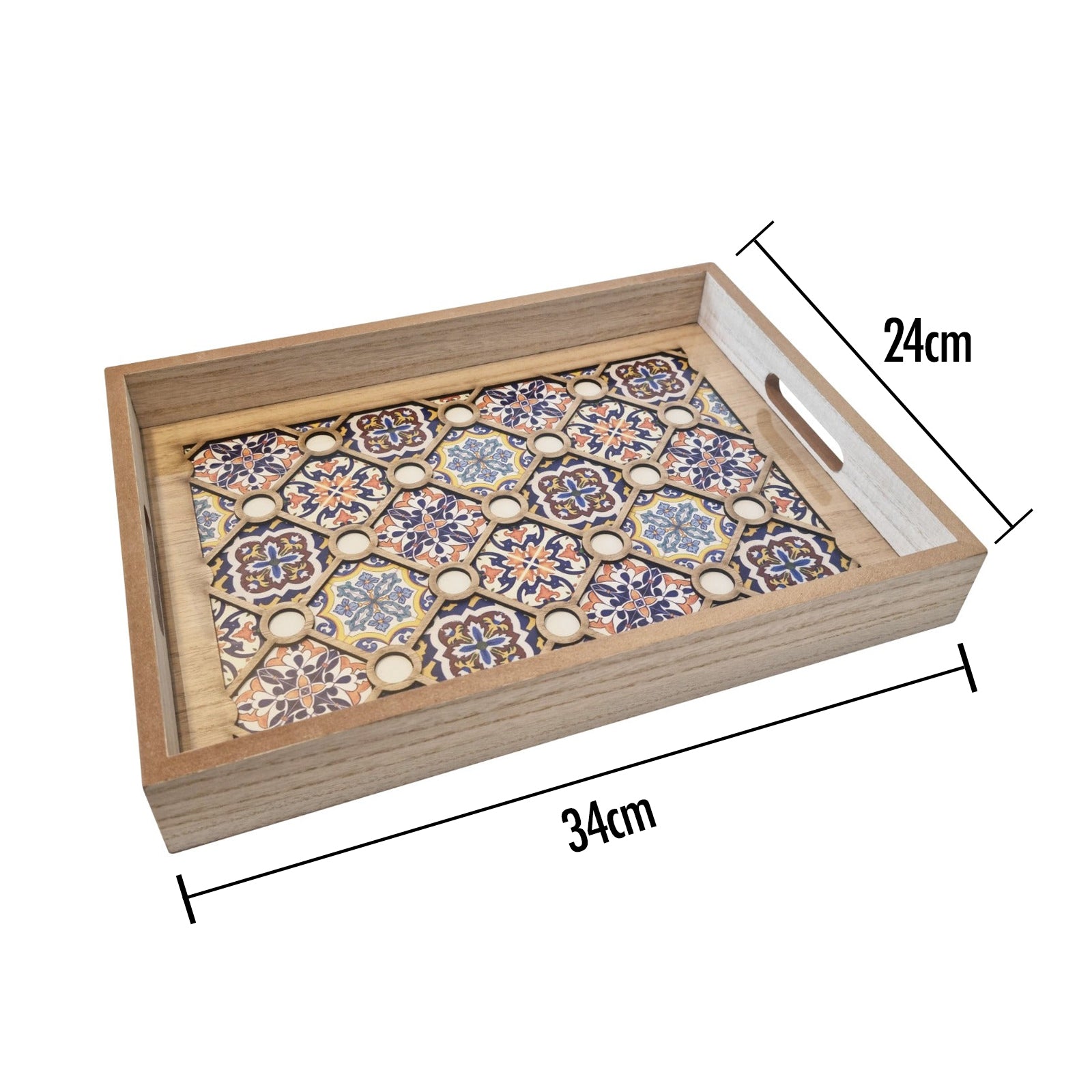 2pc Wooden Iftar Tray Set - Tiled Flower Inlay (1903-5AB)