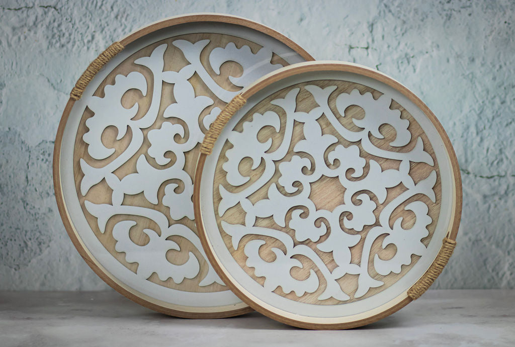 • Celebrate Eid in style with our Natural Wood & White inlay tray sets