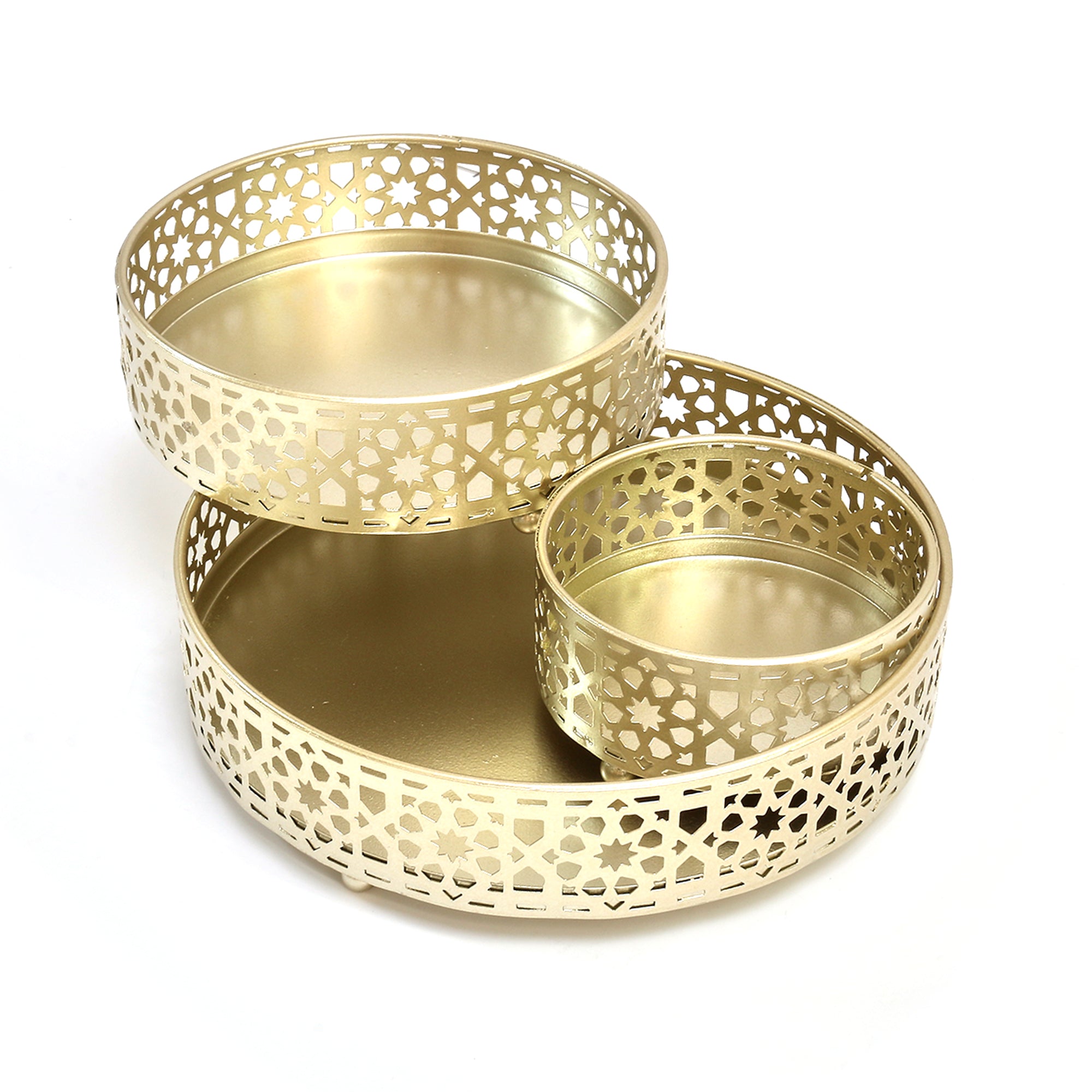 3pc-round-metal-iftar-tray-set-tea-serving-trays-geometric-cutouts