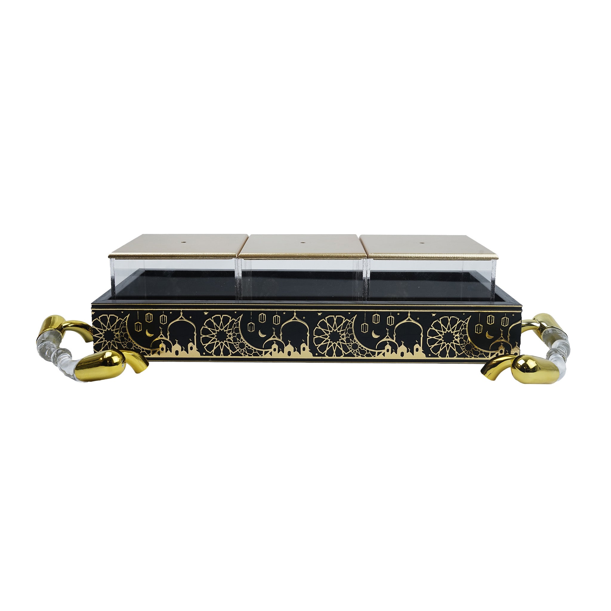 Black/Gold Serving Tray with 3-Compartments with Lids (2319-2)