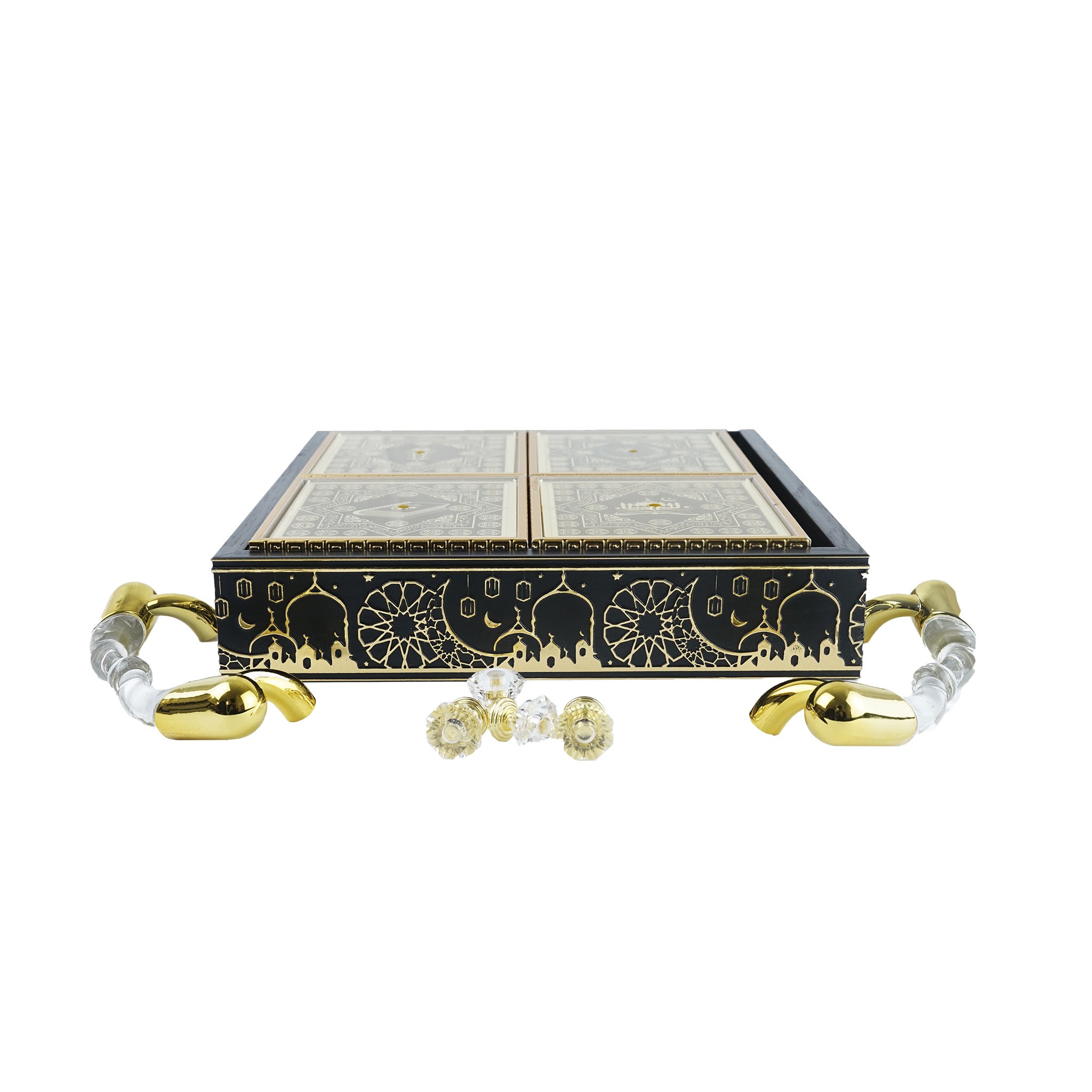 Black/Gold Serving Tray with 4-Compartments with Lids (2319-6)