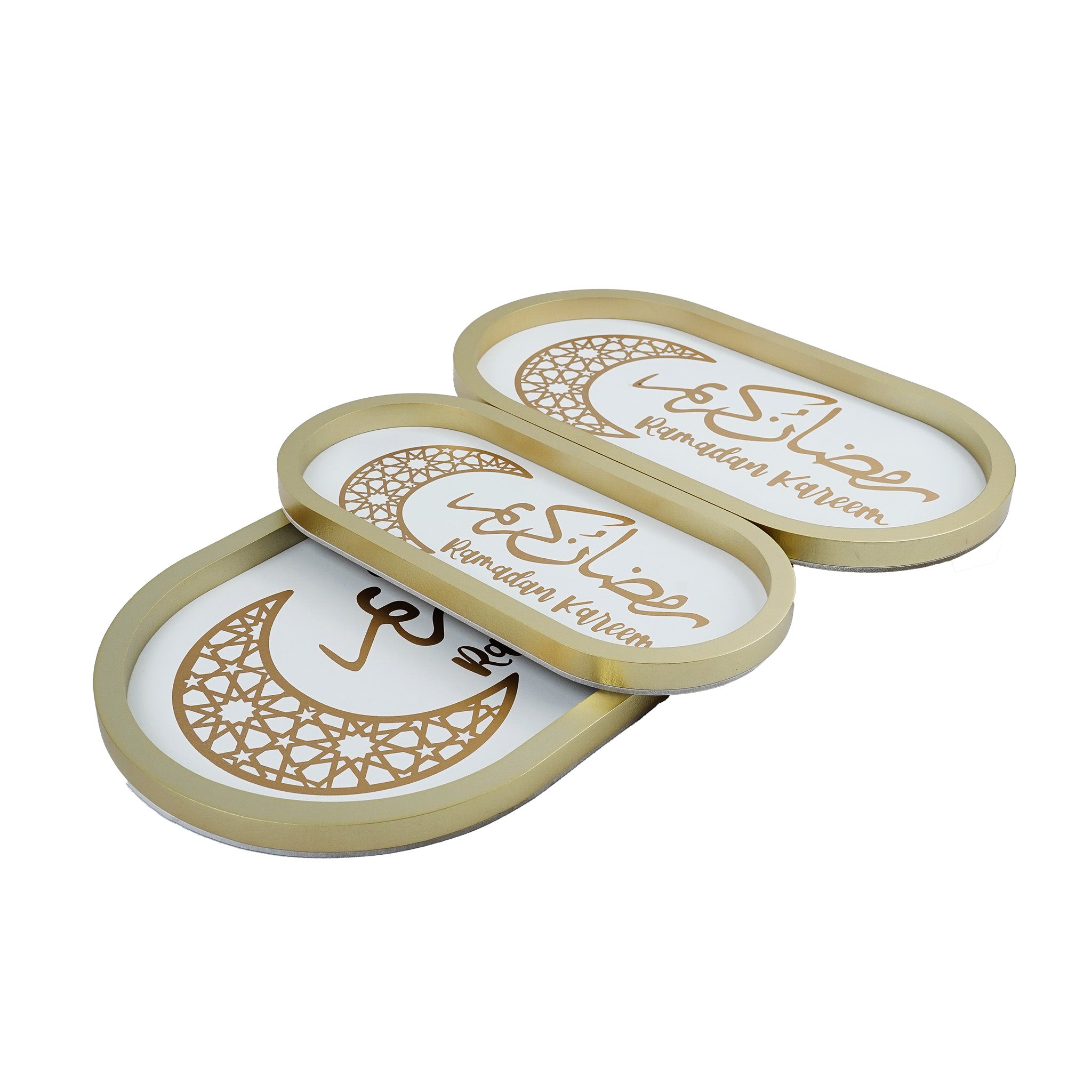 Oval Ramadan Kareem Set of 3 Gold Trays (757-31)