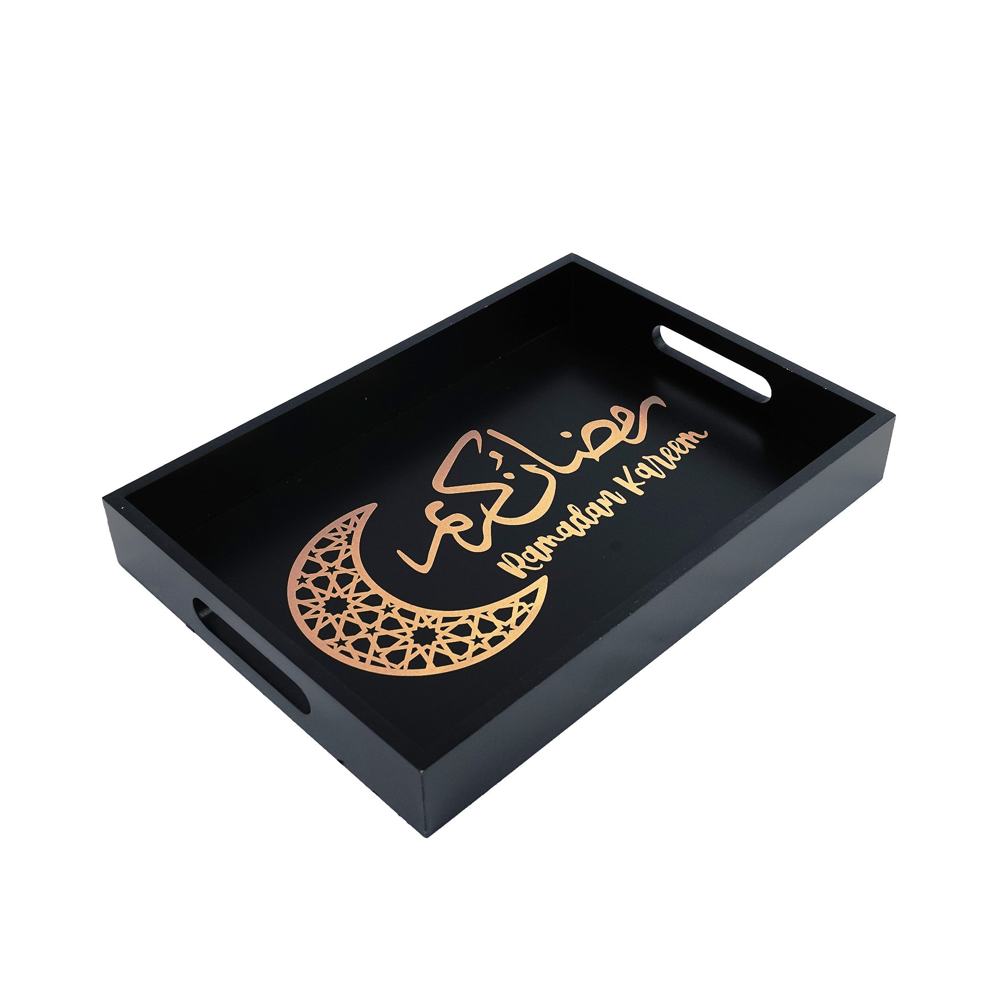 • Celebrate Ramadan in style with our BLACK Wooden tray sets with gold print