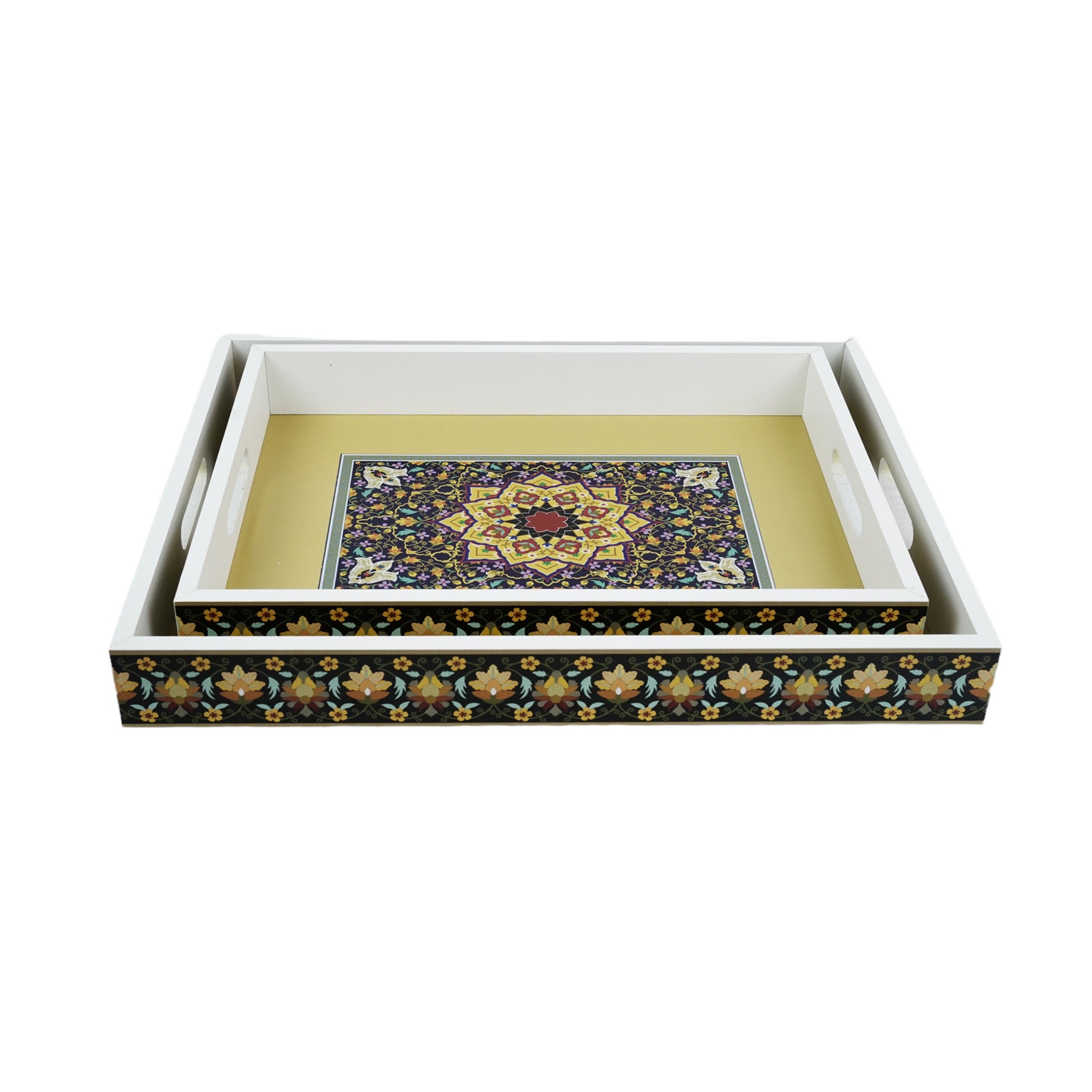 Set of 2 Colourful Floral Inlay Wooden Tray (2111-1AB)