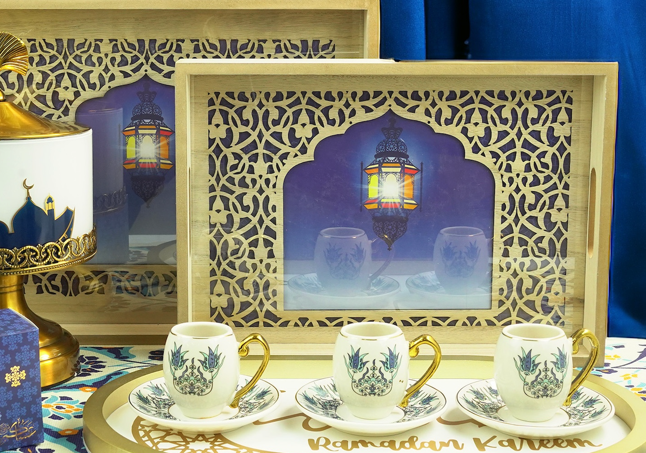 set-of-2-minaret-lantern-blue-night-rectangular-wooden-geometric-inlay-pattern-iftar-serving-trays-1904-8ab