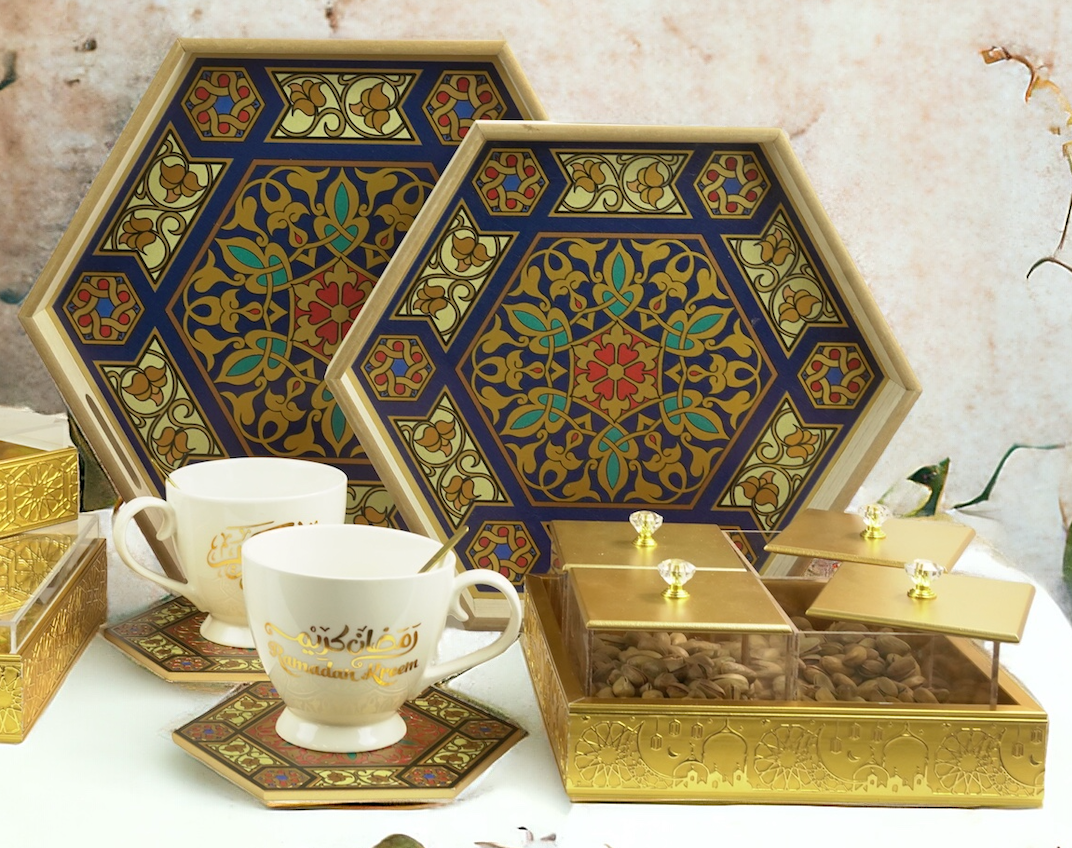 • Prepare the perfect Iftar with our attractive wooden hexagonal serving trays