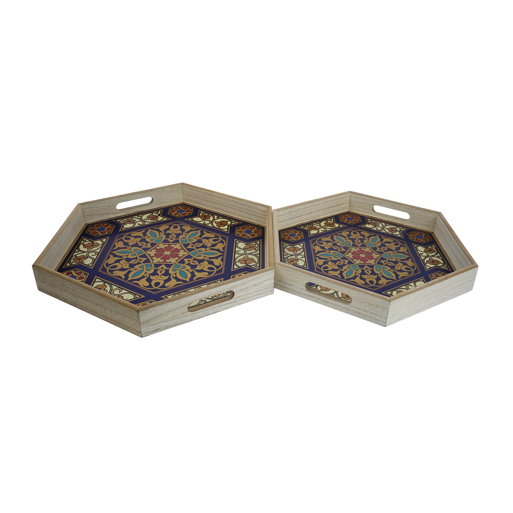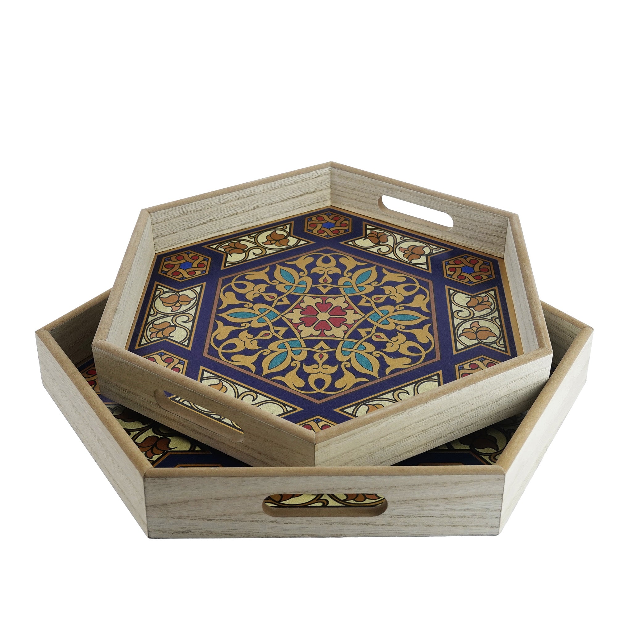 Set of 2 Mosaic Print Hexagonal Trays (2303-6AB)
