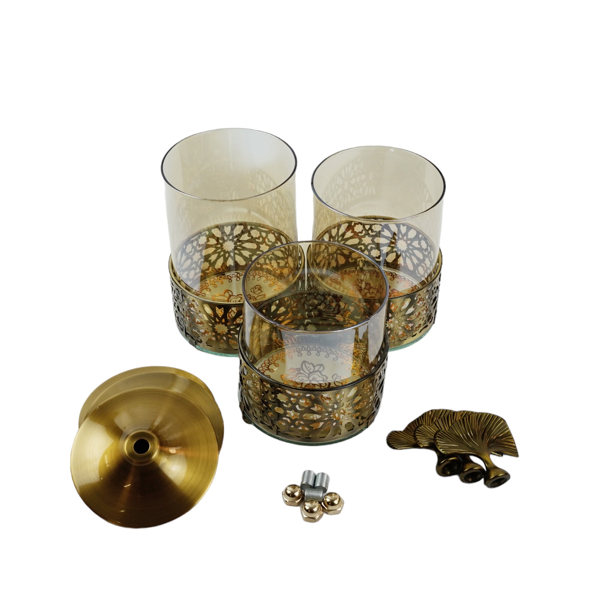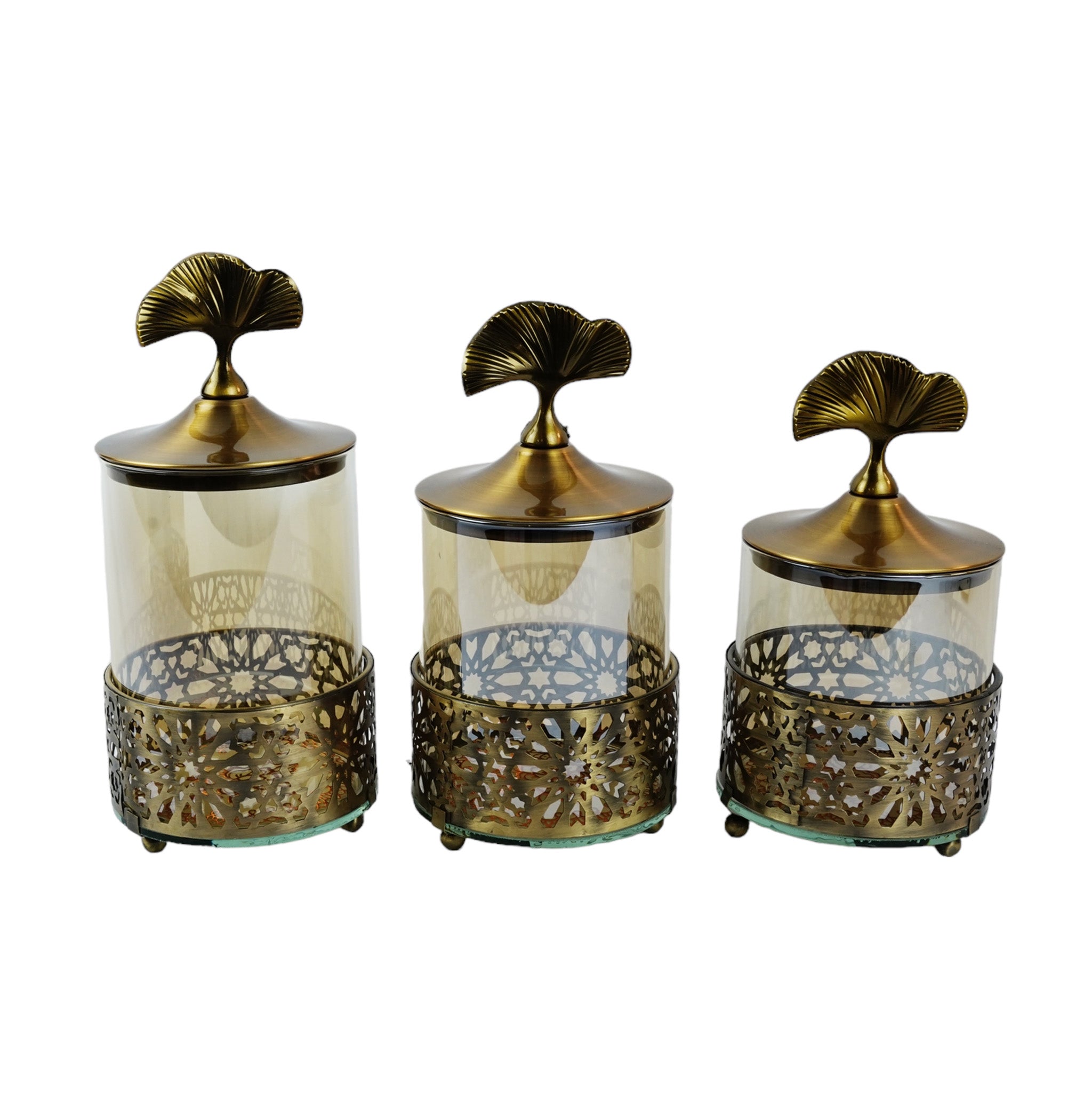 Set of 3 Brushed Bronze Ornate Lid Glass Jars (JC001)