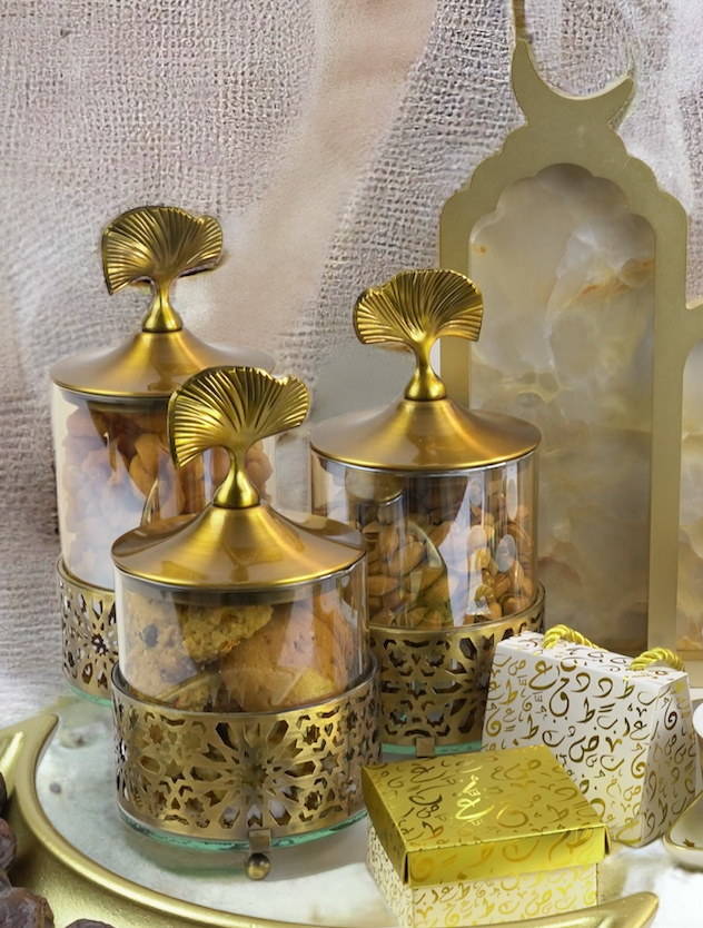 • Celebrate in style with our Ornate Lid Glass Jars Iftar Displays set