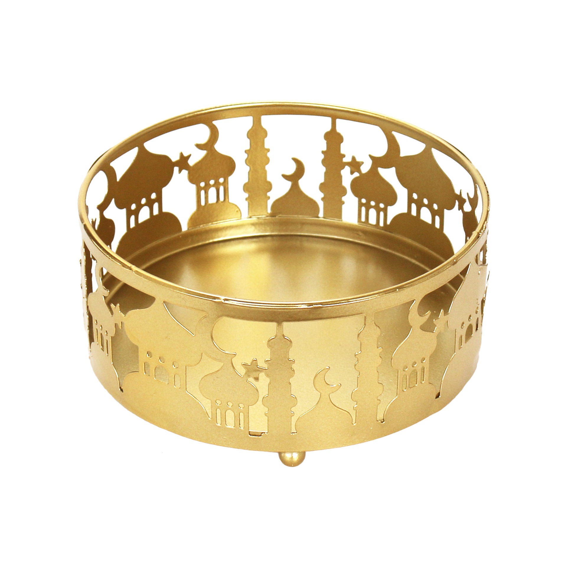 • Prepare the perfect Iftar with our gold mosque silhouette cutout tins.