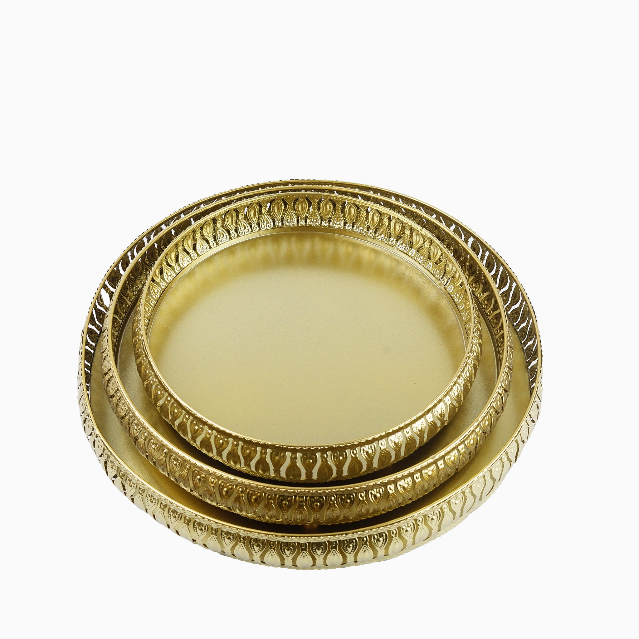 Set Of 3 Large Gold Metal Round Trays